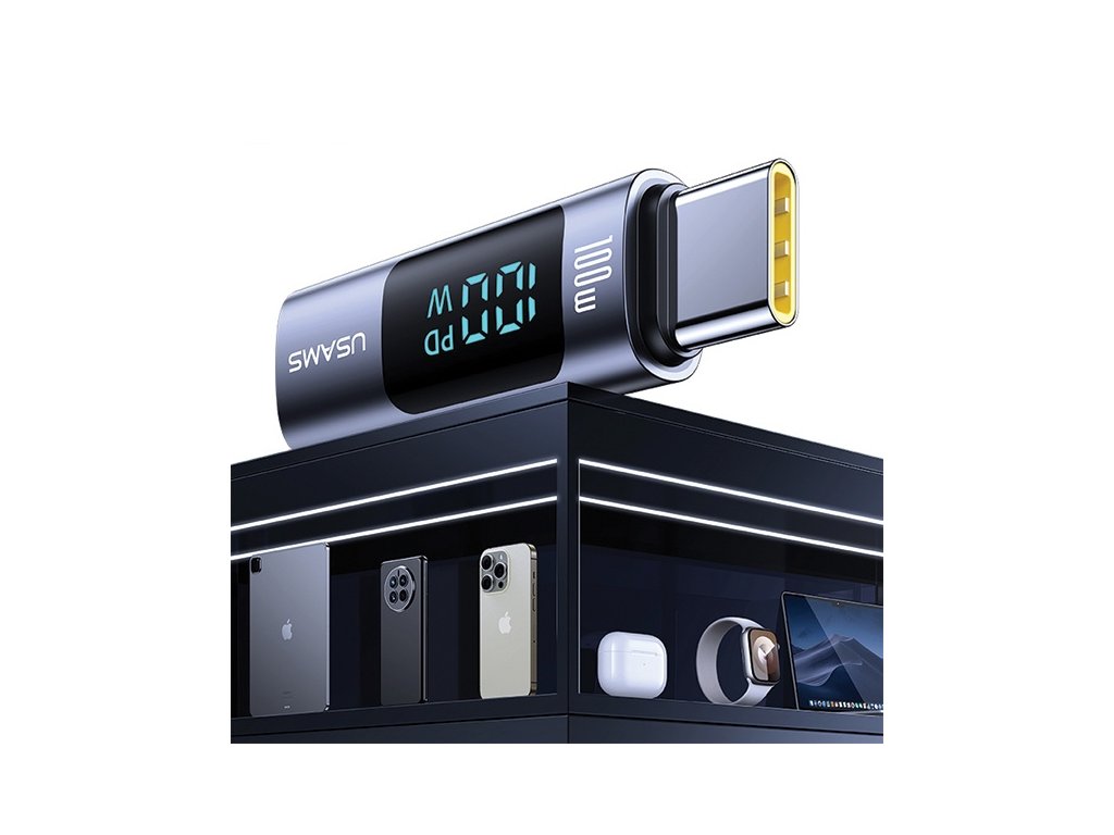 Adaptér USAMS US-SJ682 AU18 USB-C / USB-C s digitálním displejem 100W ocel/aluminium