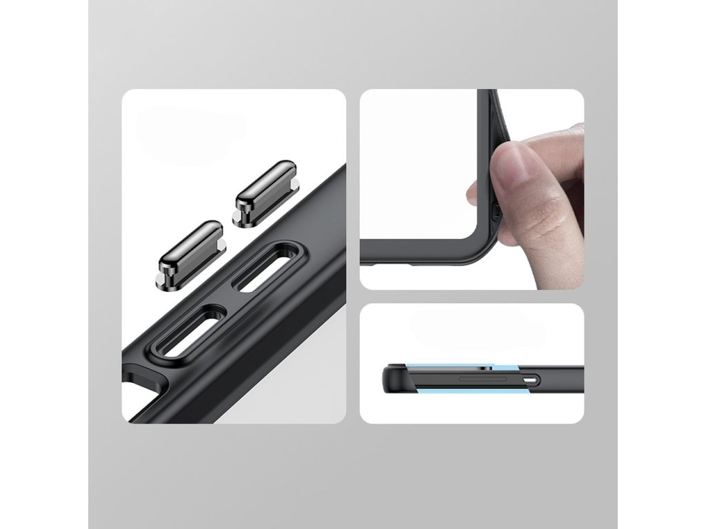 - Odolné a pevné – Zadní strana z pevného PC chrání záda zařízení, zatímco rámeček z pružného TPU chrání jeho hrany.