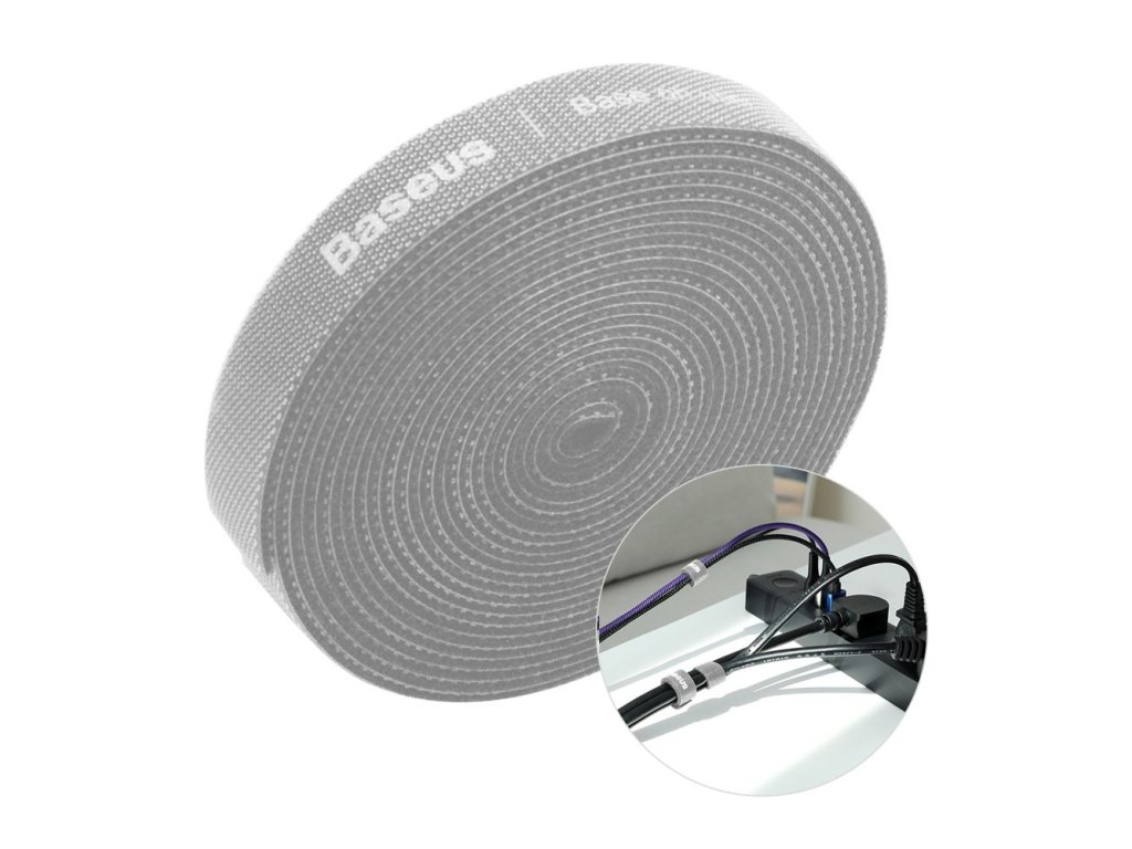 BASEUS ACMGT-F0G Rainbow Circle Velcro Straps - páska na suchý zip pro organizaci kabelů, 3m, šedá