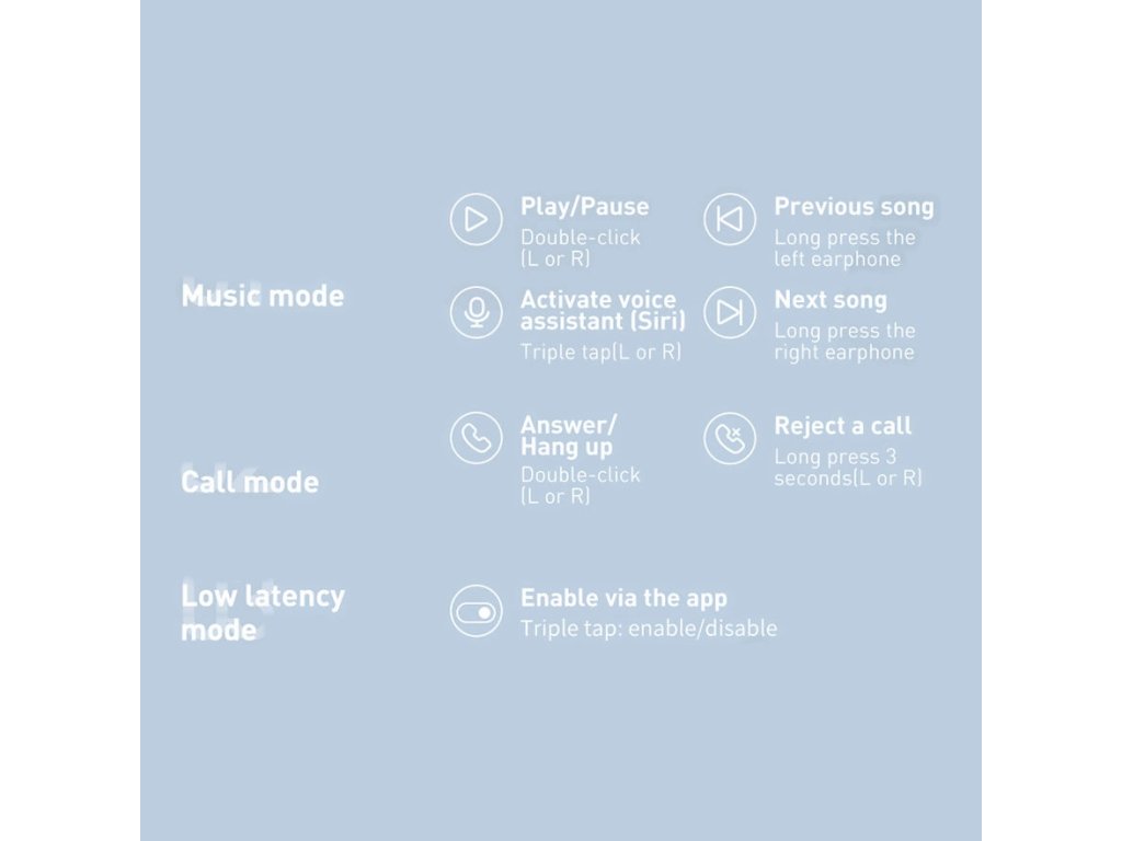 Baseus Bowie E3 jsou TWS (true-wireless) sluchátka s dotykovým senzorem a drátovým (USB-C) nabíjecím pouzdrem. Vodotěsná konstrukce odolná proti stříkající vodě vám umožňuje používat je v dešti a volně cvičit, sportovat či jen přebíhat na zastávku autobusu v dešti. Sluchátka jako taková jsou vybavena dotykovým senzorem a umožňují tak snadné ovládání. Tato sluchátka Vám tak umožní konečně běžet nebo jezdit na kole v dešti.