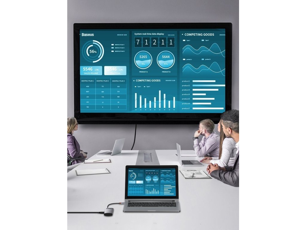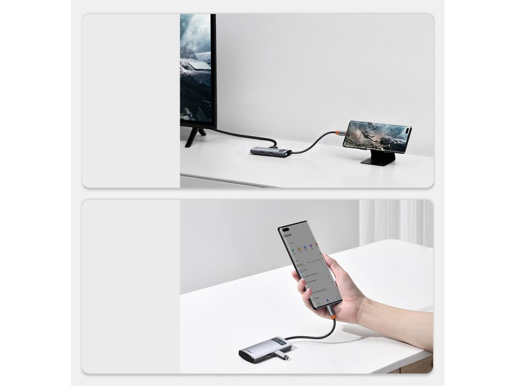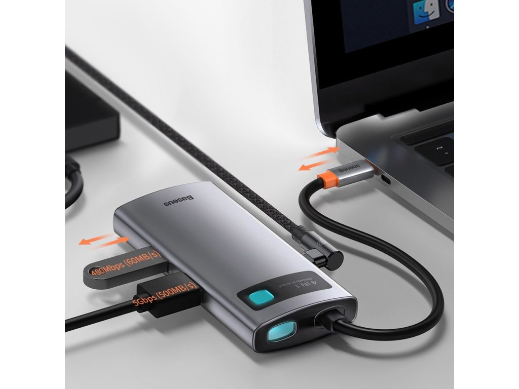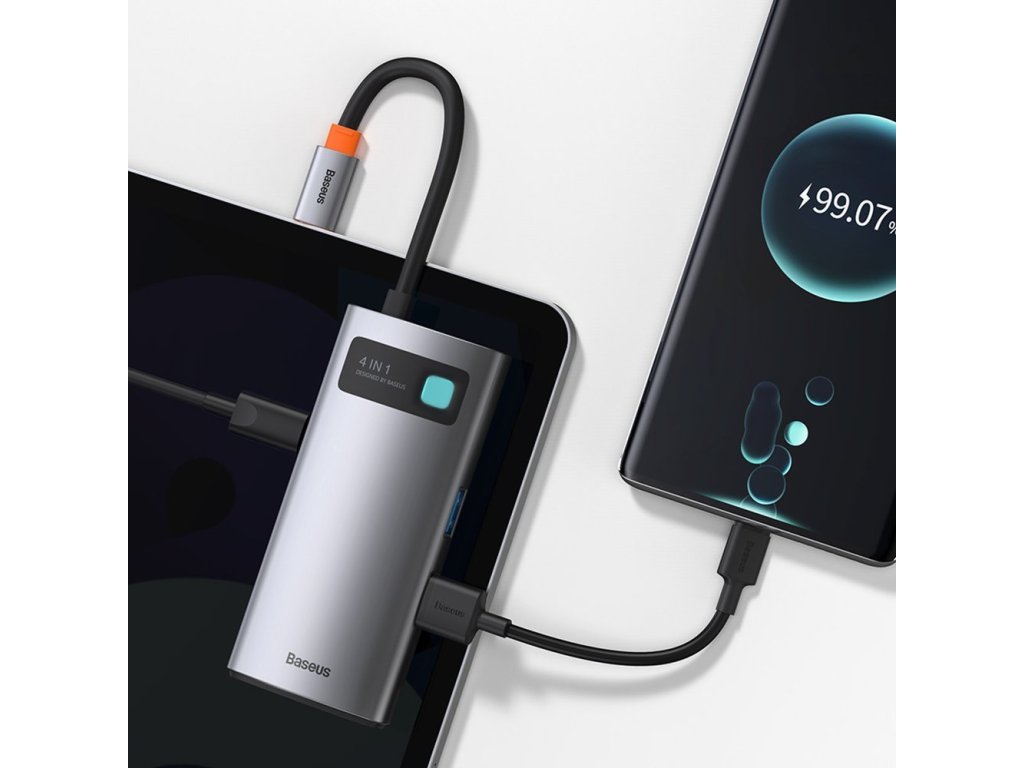 Dá se v takové situaci něco dělat? Samozřejmě! Sáhněte po Baseus USB-C hubu. S jeho pomocí můžete jediný port USB typu C svého počítače přeměnit na 4 další konektory! Ale to není všechno. Adaptér můžete připojit také k telefonu (Android), tabletu (iPad s USB-C nebo Android) nebo televiznímu set-top boxu se systémem Android (zařízení musí být vybaveno portem USB typu C OTG). Pokud máte k dispozici pouze 1 port USB typu C, adaptér vám navíc umožní připojit zařízení ke zdroji napájení o výkonu až 100 W. Hub Baseus nabízí svým uživatelům 4 porty - 2x konektor USB (USB 3.0 a USB 2.0), 1x USB-C s funkcí Power Delivery a HDMI pro externí zobrazovač. Rozhodněte se nyní a využijte všechny funkce, které tento hub 4v1 nabízí!