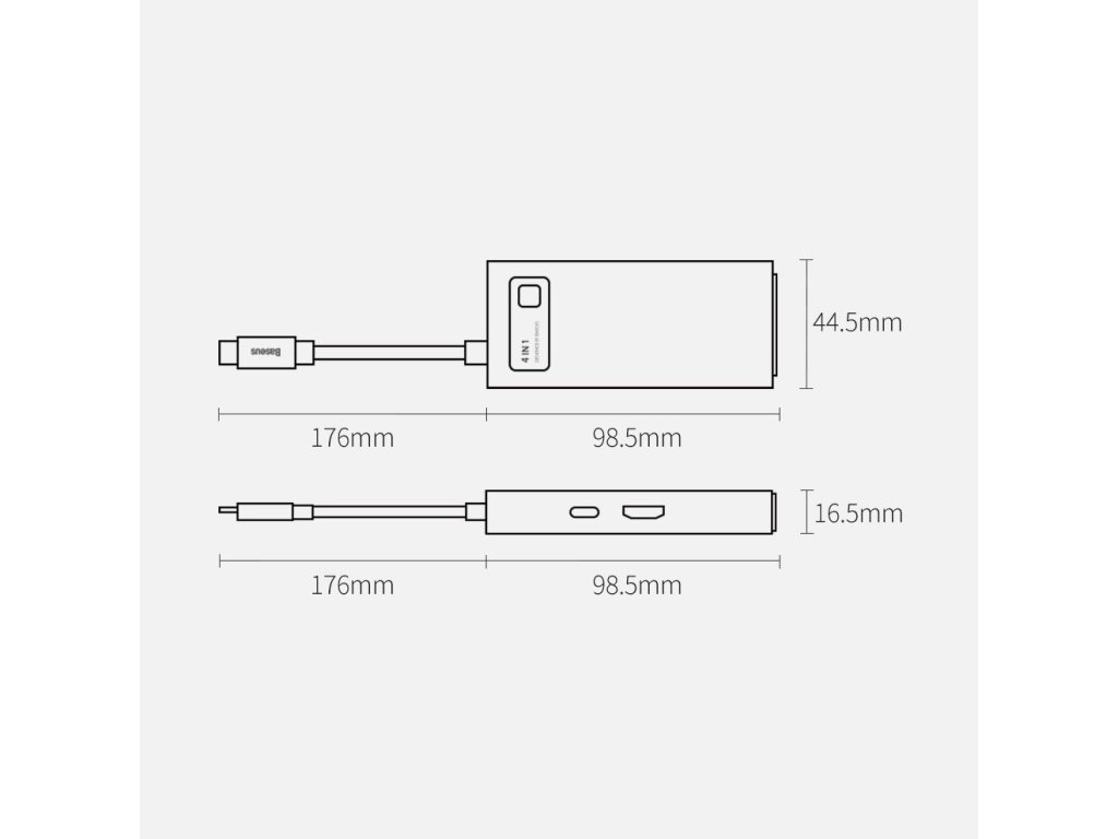 BASEUS CAHUB-CY0G USB-C Hub 4v1 (HDMI, USB-C, 2xUSB), PD až 100W, Space Grey