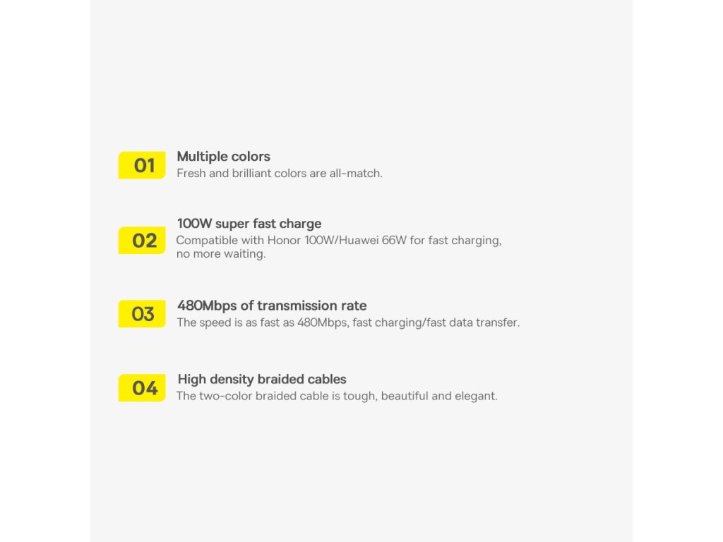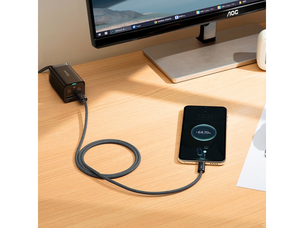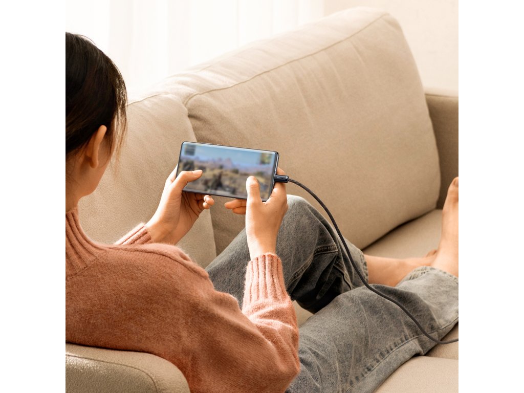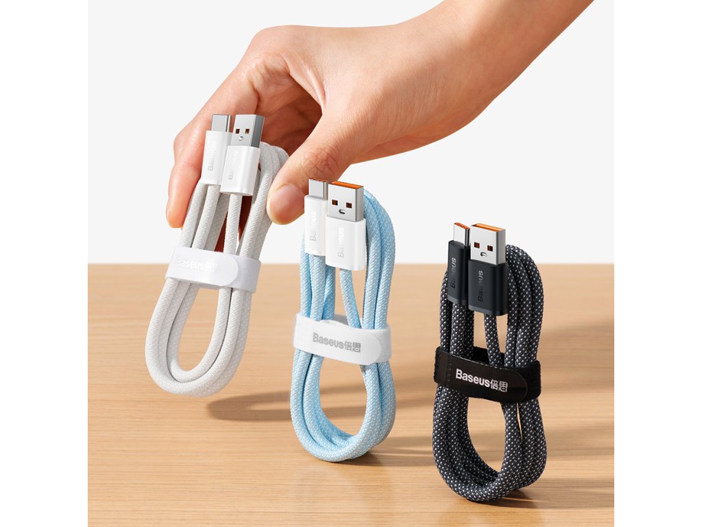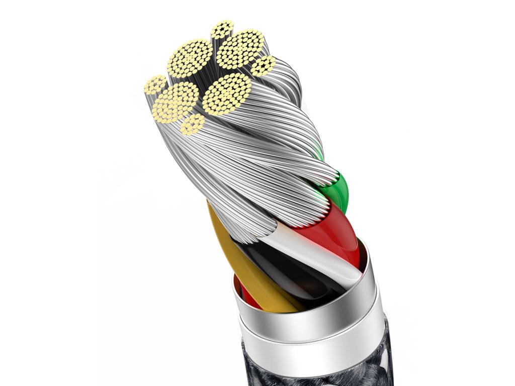 Opletený kabel Baseus řady Dynamic s odolnou texturou má dodatečné zesílení v místě připojení zástrčky ke kabelu. Je tedy odolný proti ohýbání a natahování. Uvnitř se nachází 8žilový měděný kabel, který se díky inteligentnímu čipu nezahřívá ani při současném nabíjení a přenosu dat.