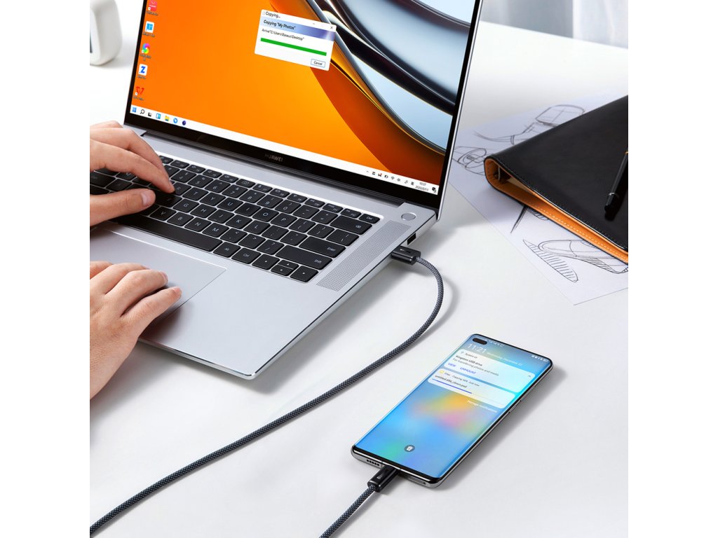 Kvalitní kabel Baseus Dynamic vám umožní napájet nejen telefon, ale dokonce i notebook - díky přizpůsobení zátěži s výkonem až 100 W. Podporuje také mnoho standardů rychlého nabíjení, takže při připojování telefonu k nabíječce nemusíte být trpěliví, protože se nabije opravdu rychle!