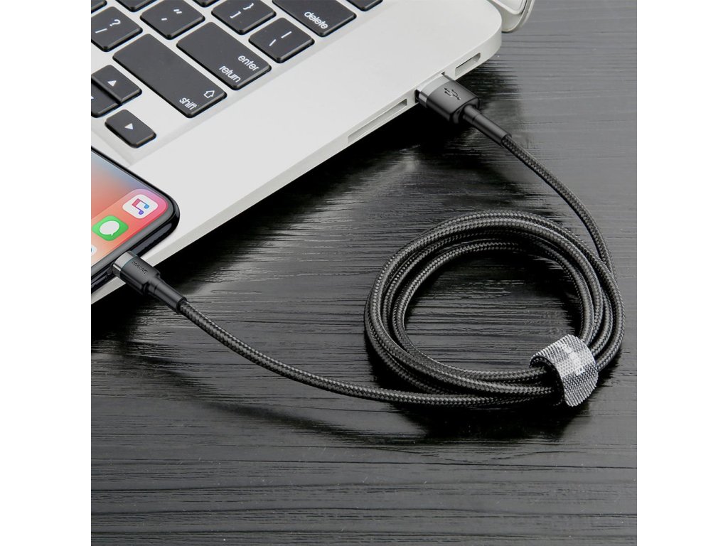 Super odolný USB kabel - BASEUS Cafule. Umožňuje současné nabíjení a přenos dat. Vybaven praktickým suchým zipem pro snadné skladování. Nylonový oplet zabraňuje zlomení kabelu a zajišťuje dlouhodobé používání. Čistě měděný kabel zaručuje okamžitou obnovu energie. Zesílené konektory navíc zabraňují poškození kabelu při vytahování a prodlužují tak jeho životnost.