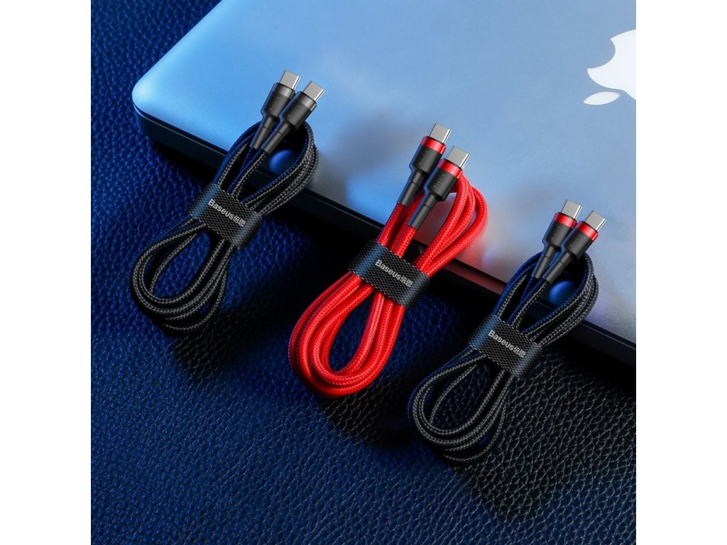 BASEUS CATKLF-H91 opletený a odolný kabel Cafule USB-C/USB-C, 2m, černo-červený