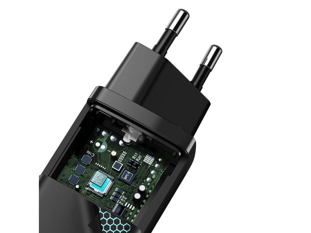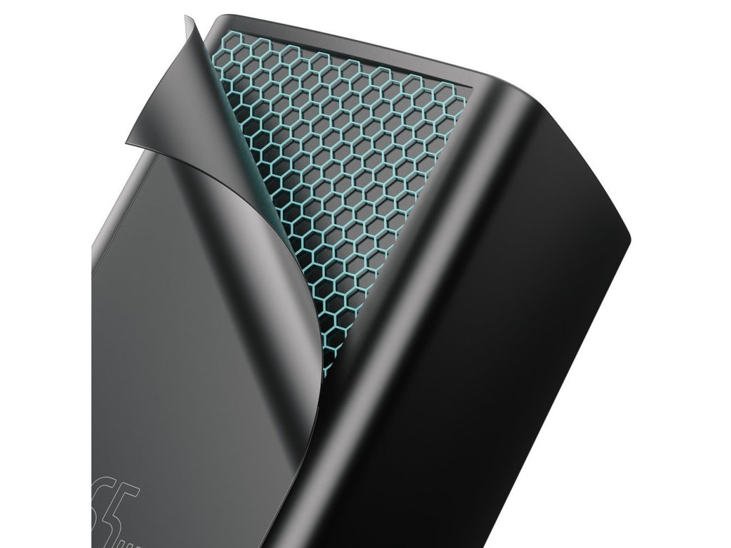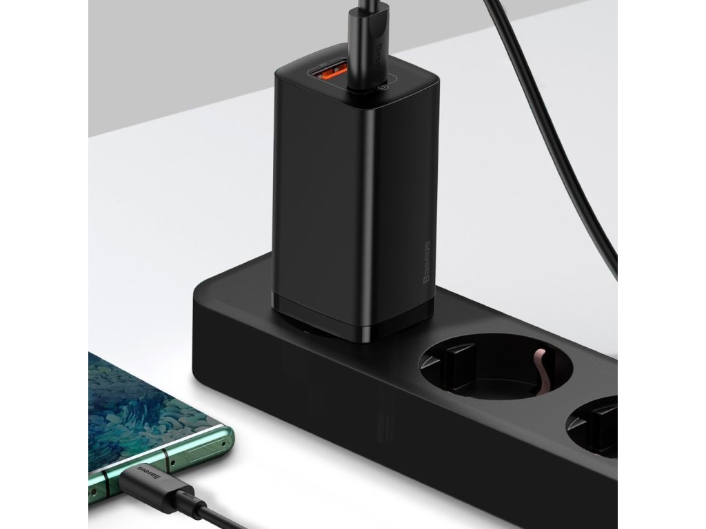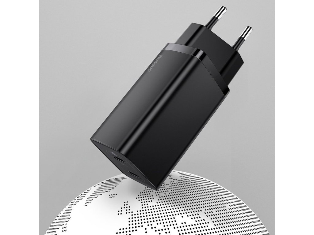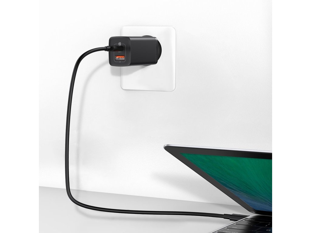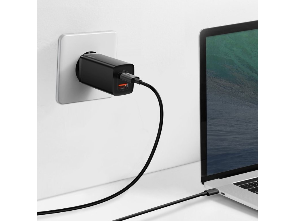 Je ideální pro nabíjení notebooků s konektorem USB typu C. Je také možné nabíjet dvě zařízení najednou. Uživatel se nemusí obávat zkratu ani přepětí. Technologie BPS (Baseus power split) umožňuje inteligentní rozdělení výstupního proudu při provozu několika zařízení. Pro zvýšení komfortu používání nabíječky Baseus GaN výrobce použil až 6 ochran, včetně ochrany proti přehřátí, přepětí, vysokému napětí, přetížení, nadměrné spotřebě energie a elektrostatiky.
