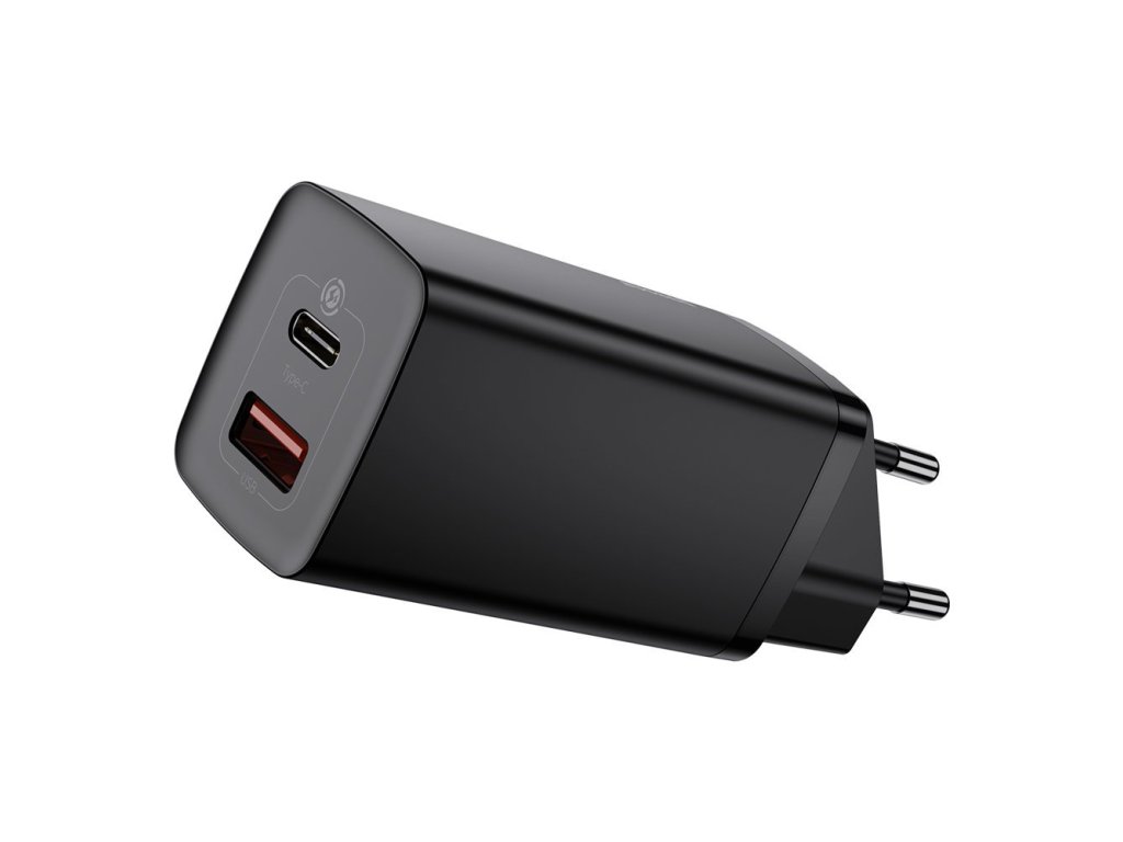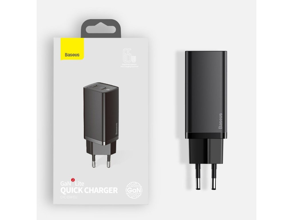 BASEUS CCGAN2L-B01 GaN2 Lite Dvouportová nabíječka USB + USB-C PD 65W, černá