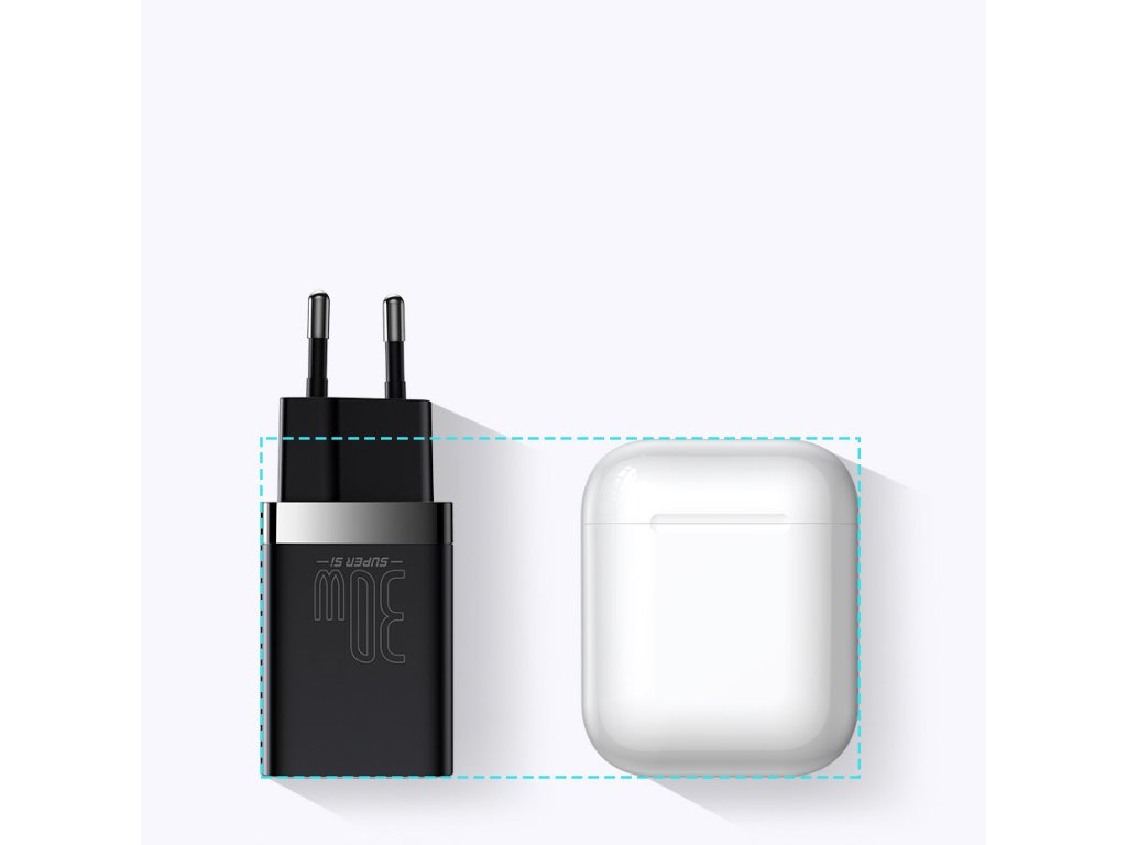 Kompaktní nabíječka Baseus CCSUPP Vám umožní rychle nabít zařízení s výkonem až 30W. Díky propracovanému bezpečnostnímu systému chrání napájená zařízení před poškozením. Vyznačuje se kompatibilitou s celou řadou smartphonů a tabletů a díky rozsahu vstupního střídavého napětí 100-240V umožňuje jeho použití téměř kdekoli na světě. Její obrovské možnosti jdou ruku v ruce s její malou velikostí - můžete ji snadno vložit do kapsy!