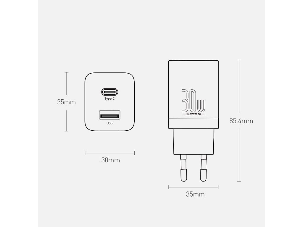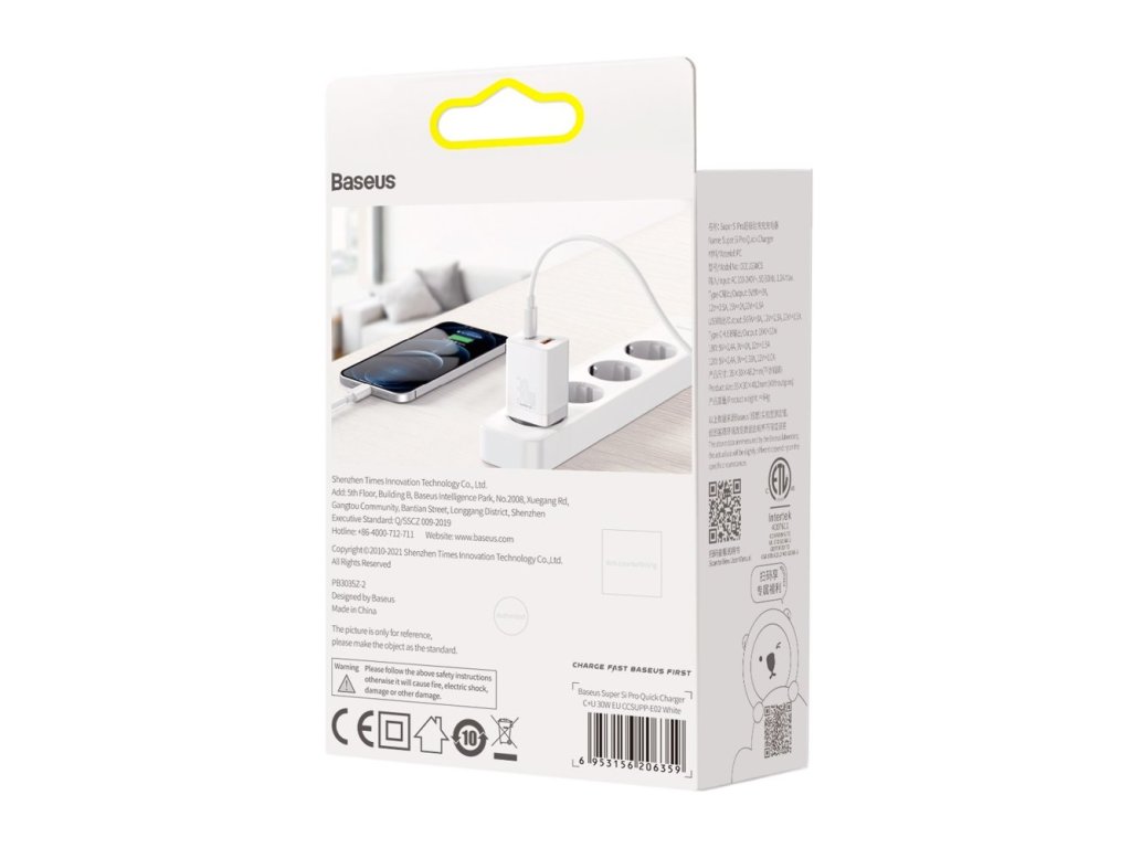 BASEUS CCSUPP-E02 Super Si nabíječka USB-C PD a USB s výkonem 30W, bílá