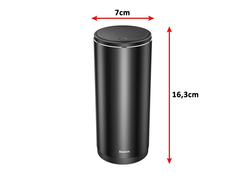 Odpadkový koš do auta Baseus se vyznačuje kvalitní konstrukcí, kombinací hliníku a ABS plastu a nádherným designem. Díky tomuto elegantnímu a modernímu designu dokonale zapadne do interiéru každého vozu. Ačkoliv má koš objem 500 ml, tak zabírá jen velmi málo místa a zachovává si kompaktní rozměry 13 x 7cm (výška x průměr).