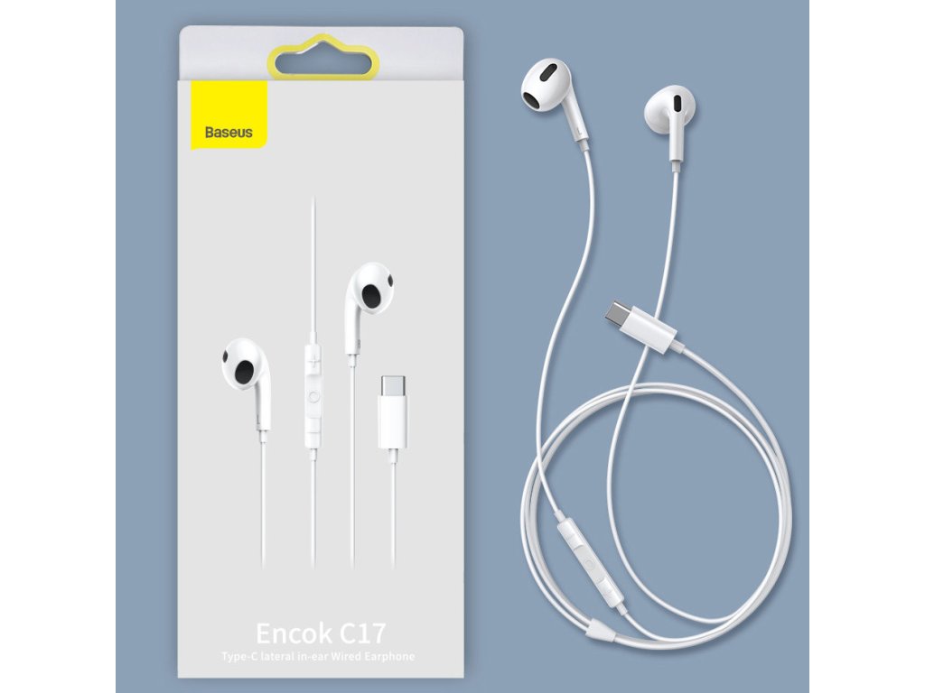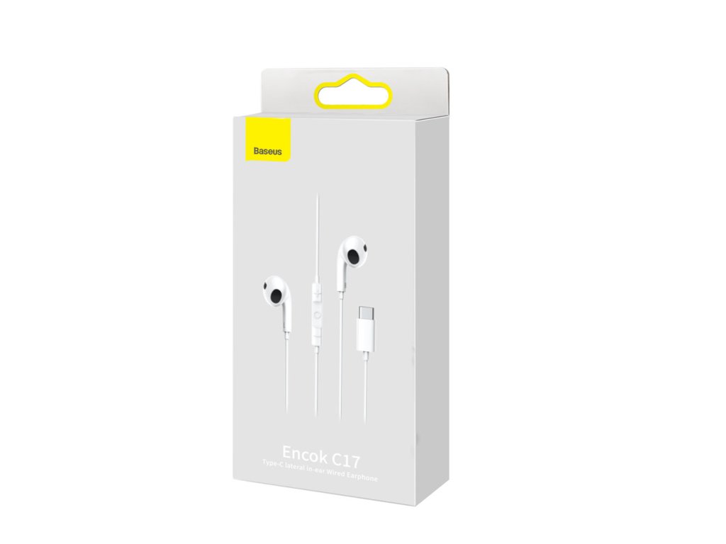 BASEUS Encok C17 (NGCR010002) Prémiová USB-C sluchátka s mikrofonem, délka 1,1m, bílá