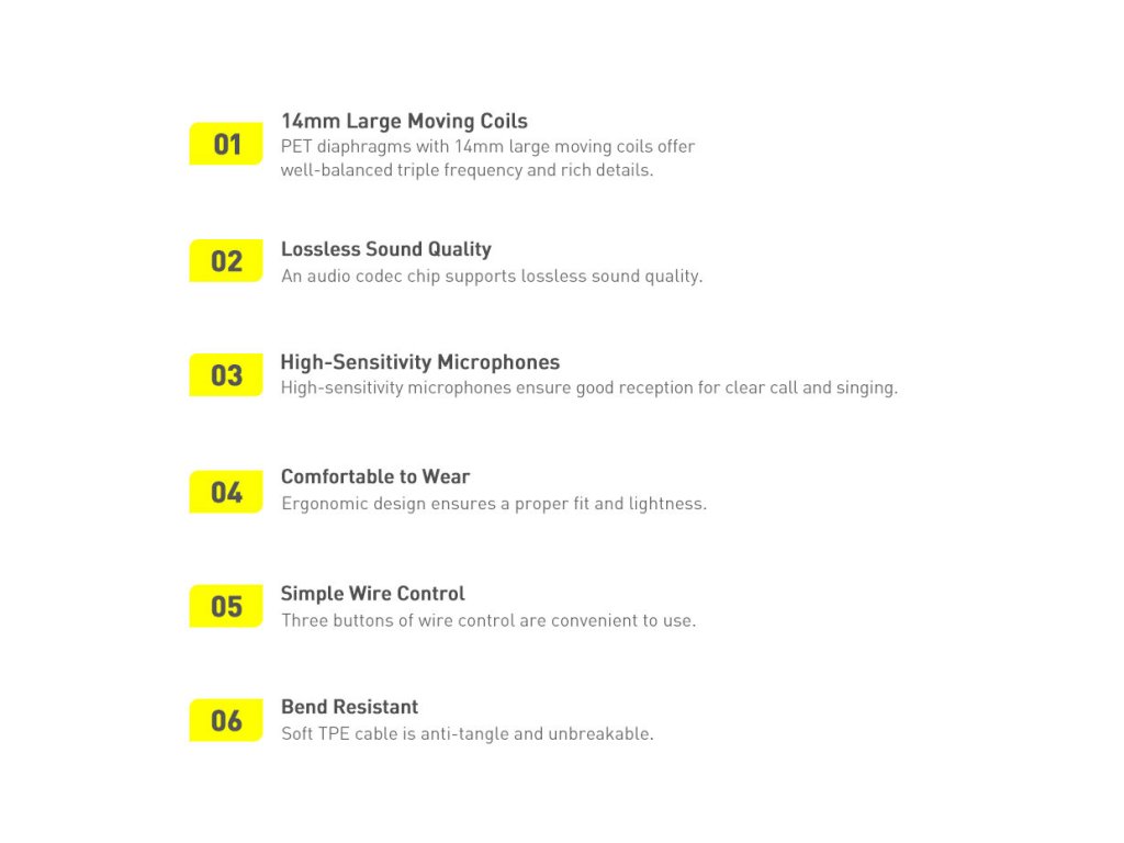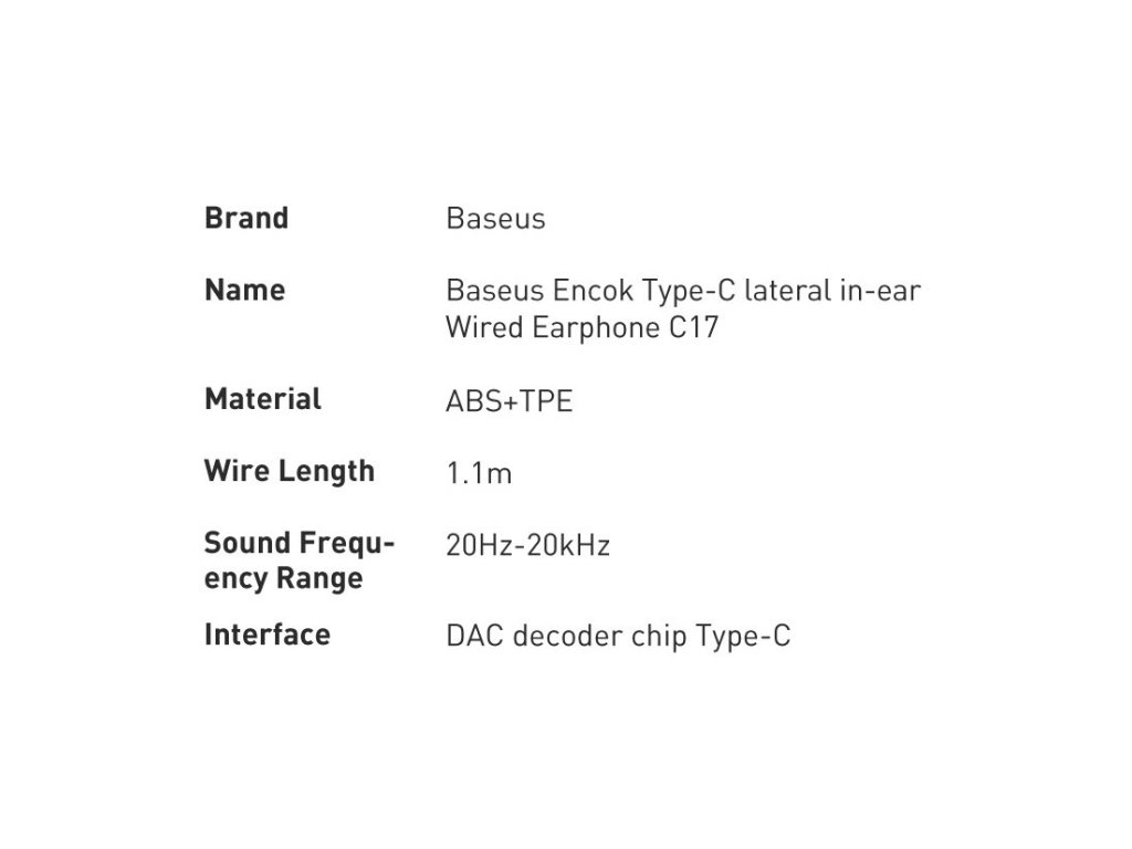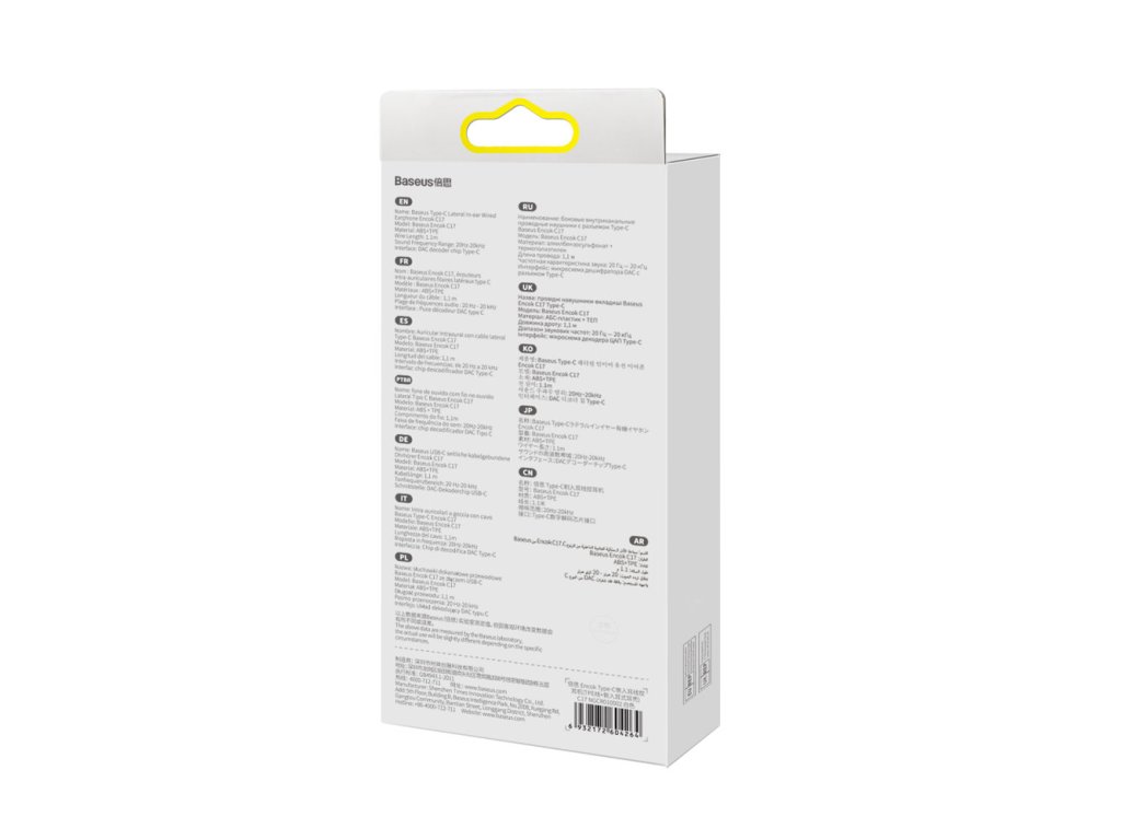 Baseus C17 jsou pohodlná a prémiová sluchátka do uší s ergonomickým designem, který zaručuje nejen maximální pohodlí při používání, ale také skvělou kvalitu zvuku. Jedinečná konstrukce headsetu umožňuje dokonalé přizpůsobení tvaru ucha! Zvuk je čistý a vyvážený, takže si můžeme naplno vychutnat svou oblíbenou hudbu i telefonní hovory. Malé otvory na zadní straně těla pecek mají pak za cíl dodatečné posílení basů. Celý komplet je navíc vybaven dlouhým a ohebným kabelem s praktickým dálkovým ovládáním, které umožňuje okamžitě přepínat mezi skladbami, ovládat hlasitost a přijímat telefonní hovory jedním tlačítkem. Vše je vyrobeno z vysoce kvalitních materiálů pro zajištění prémiového přenosu zvuku.