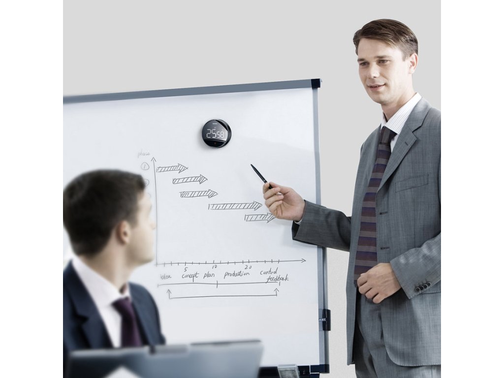 Časovač můžete jednoduše připevnit na kovové povrchy díky jeho magnetickým prvkům. Mohou to být dveře lednice nebo tabule v přednáškovém sále, umístěte zařízení tam, kde bude viditelné a stabilní. Nebo jej prostě můžete položit na stůl. Rozsah nastavení je od 0° do 80°.