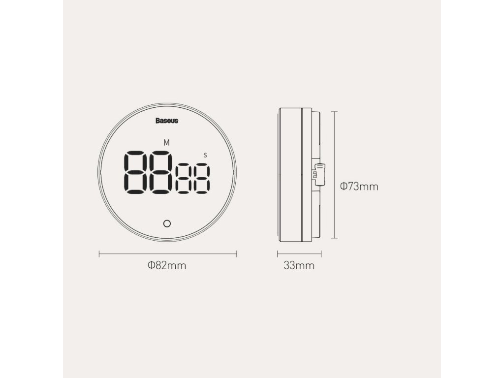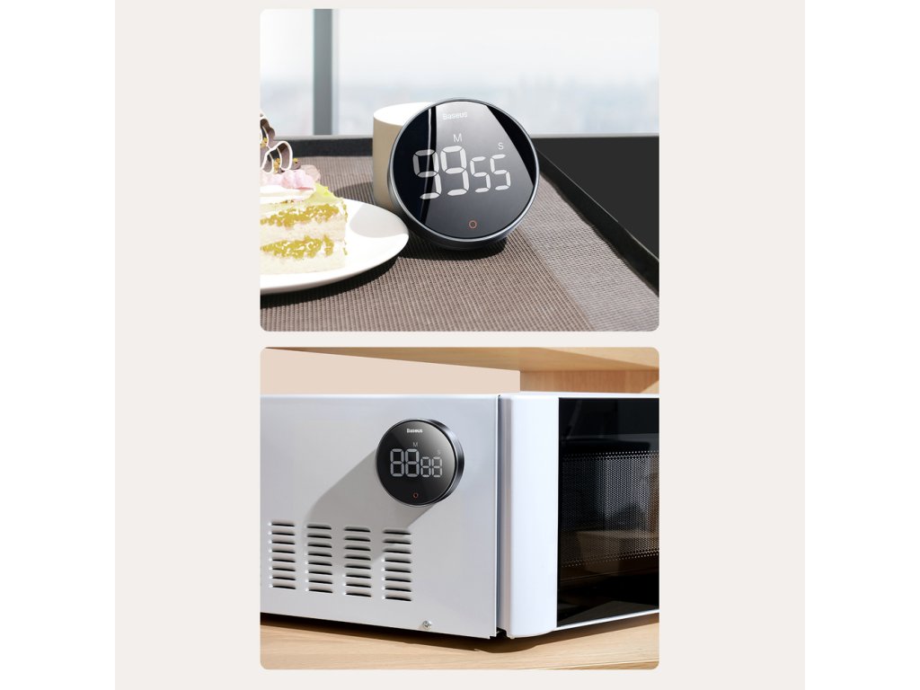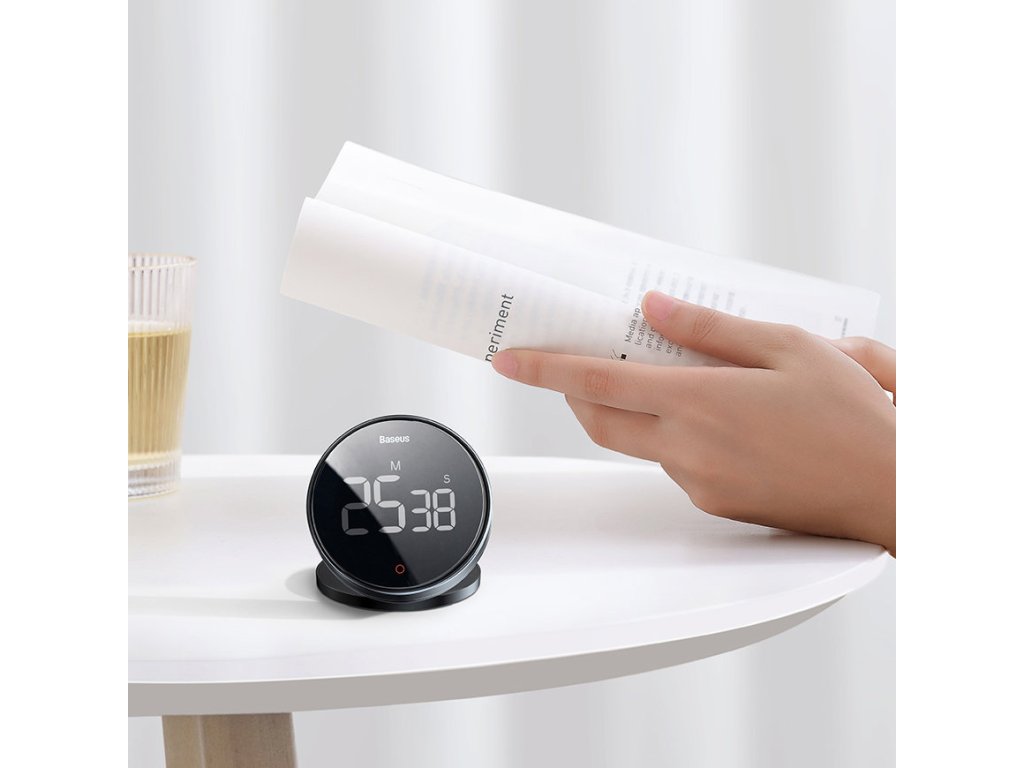 Elegantní časovač BASEUS nesmí chybět v žádné domácnosti - efektivně odpočítává čas a usnadňuje všechny činnosti, které vyžadují přesné načasování. Velký displej umožňuje odečítat údaje na dálku a tři režimy hlasitosti Vám umožní přizpůsobit minutku aktuálním okolnostem a situacím. Verze PRO je navíc vybavena naklápěcí základnou, abyste ji mohli mít pohodlně položenou na stole, ale stále viděli na displej v úhlu až 80°.
