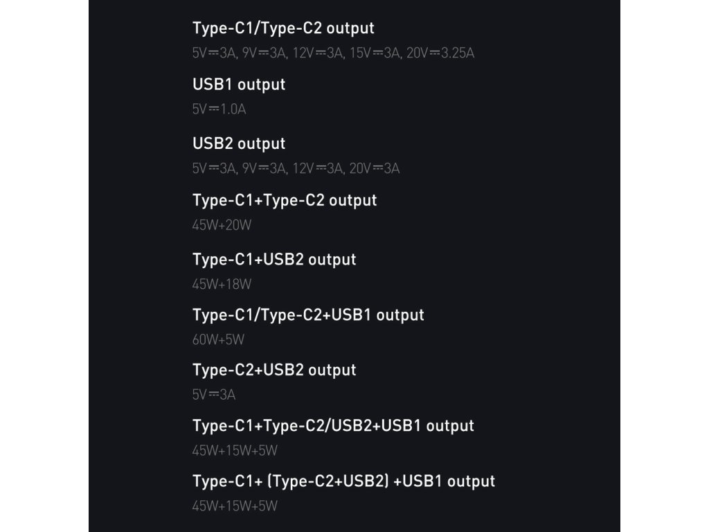 - 20V/3A Max (60 W)