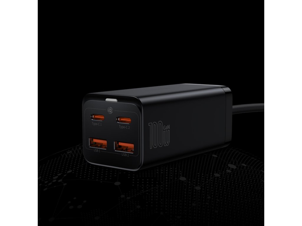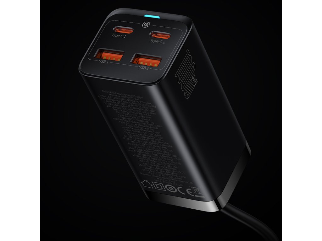 Baseus GaN3 Pro rychlá univerzální síťová nabíječka GaN 2 x USB Typ C / 2x USB 100W PD3.0, QC4.0+, AFC černá (CCGP000101)
