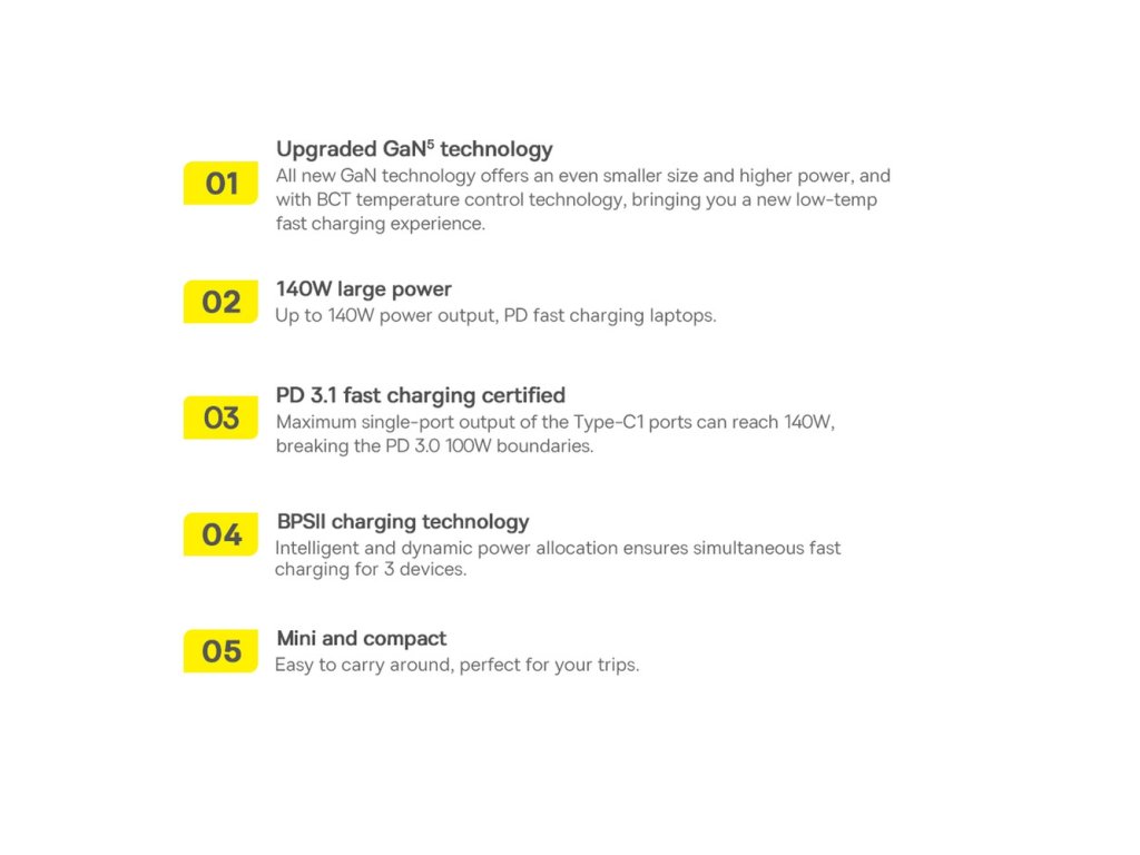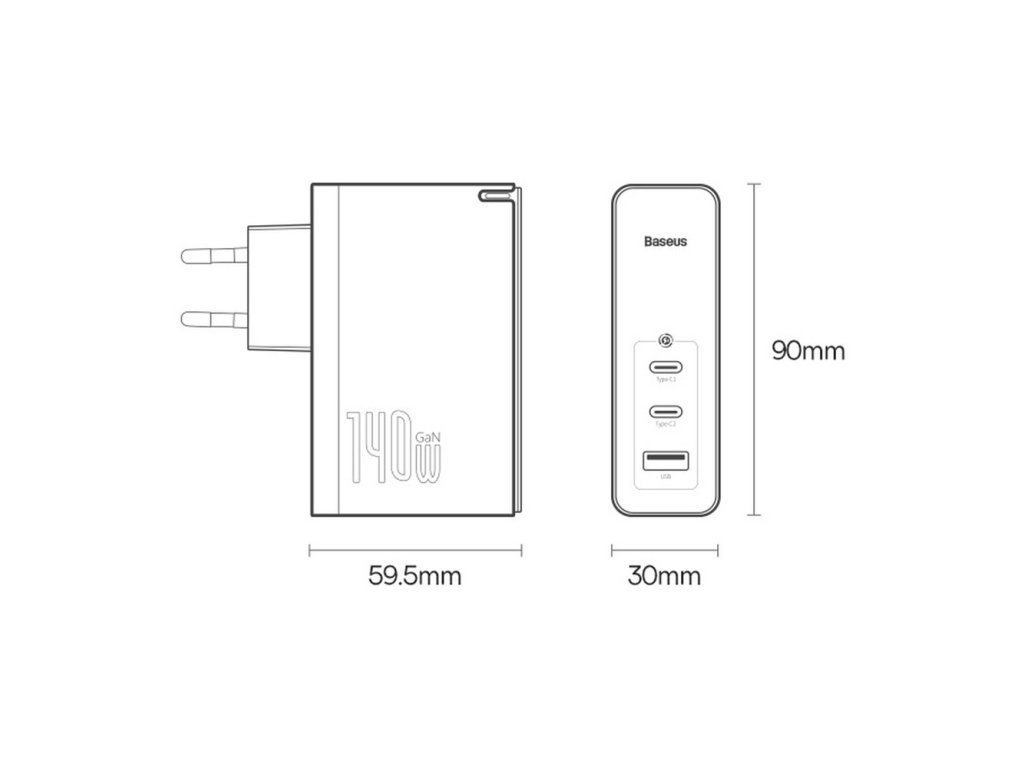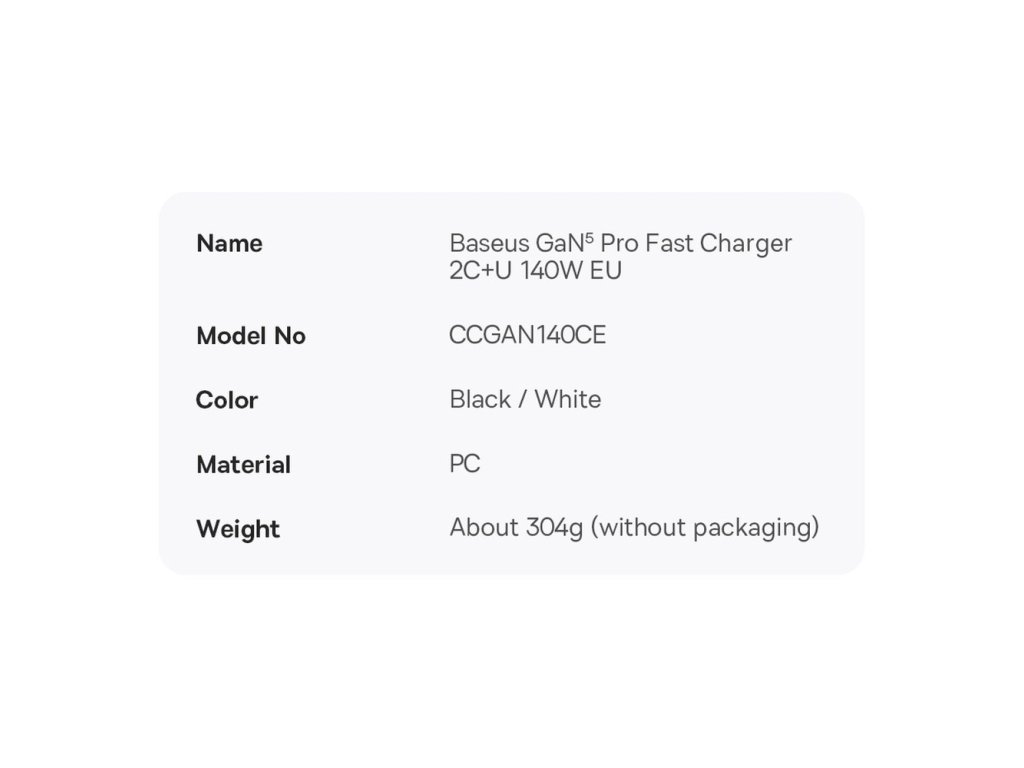 - Nazwa: Baseus GaN5 Pro Fast Charger 2C+U 140W EU