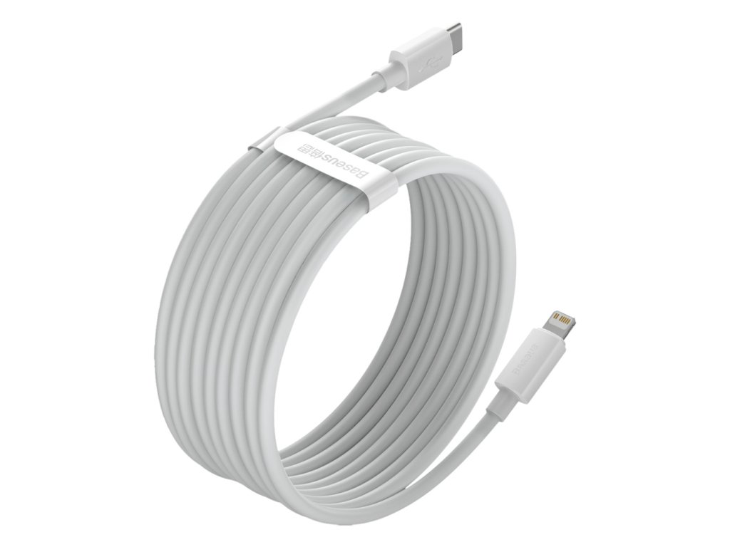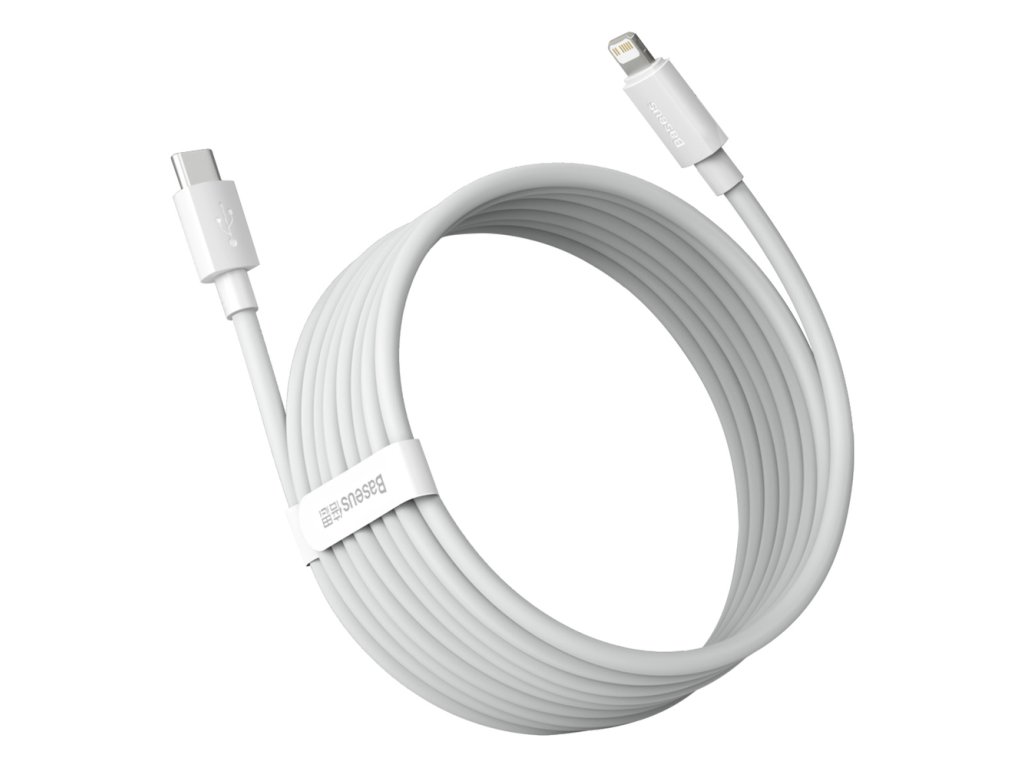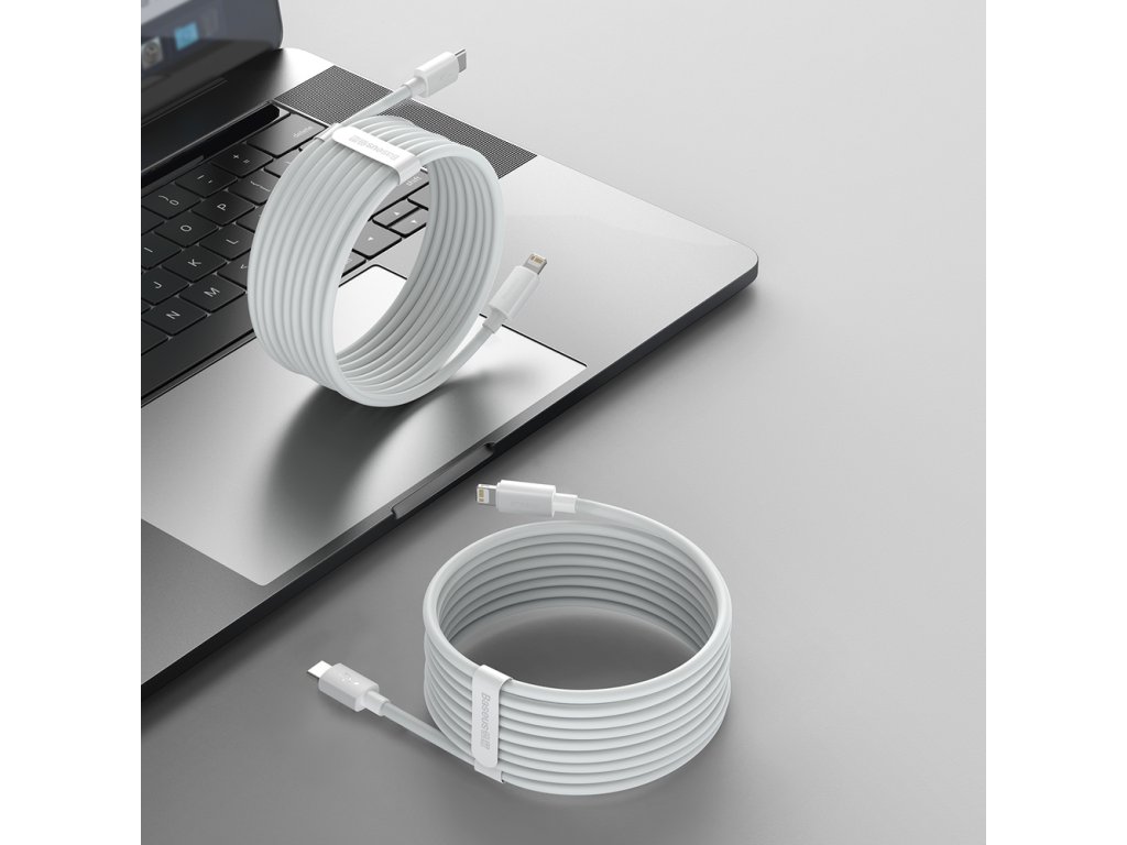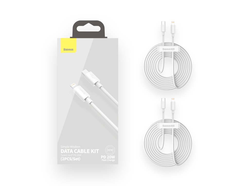 BASEUS TZCATLZJ-02 Simple Wisdom kabel USB-C/Lightning PD 20W, 1,5m, bílý, 2-pack
