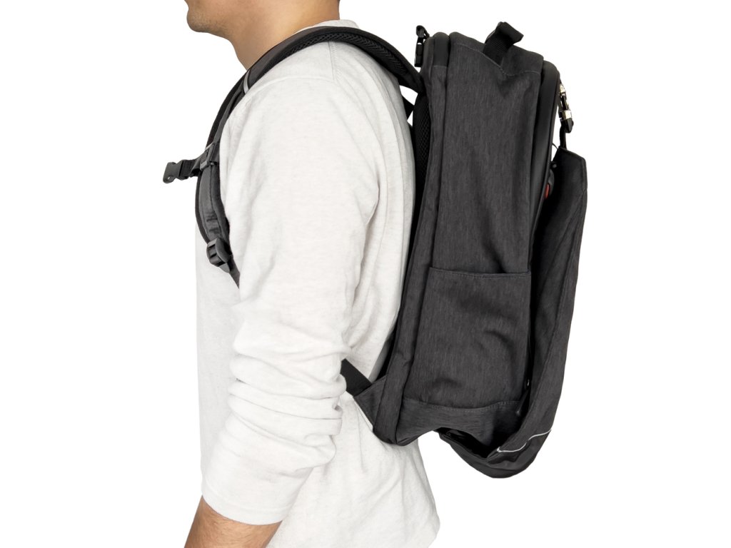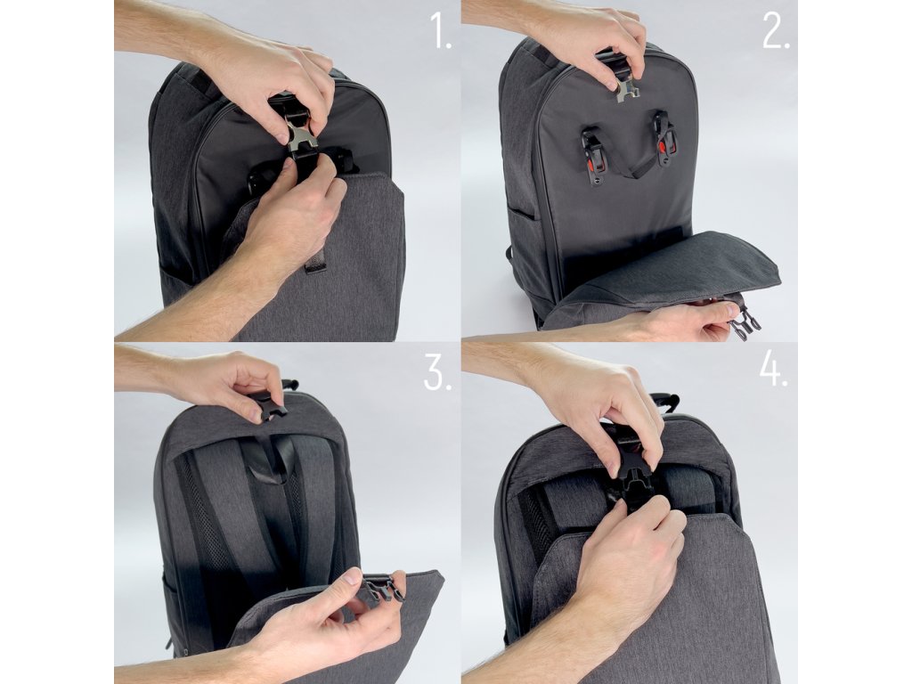- Kdykoli ji můžete odpojit z kola a nosit jako batoh. Taška má všité pohodlné ramenní popruhy a hrudní pás