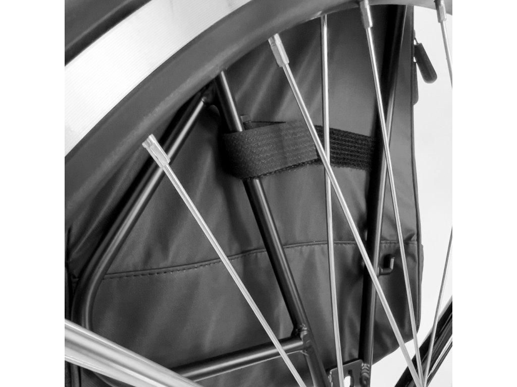 - Připevníte ji na kolo během několika okamžiků. Speciální háčky a suchý zip umožňují bezpečné upevnění tašky