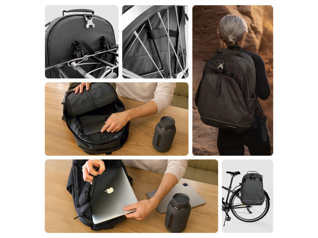 Cyklistická taška na nosič 2 v 1, batoh s kapacitou 30 l Wozinsky – černá (WBB33BK)