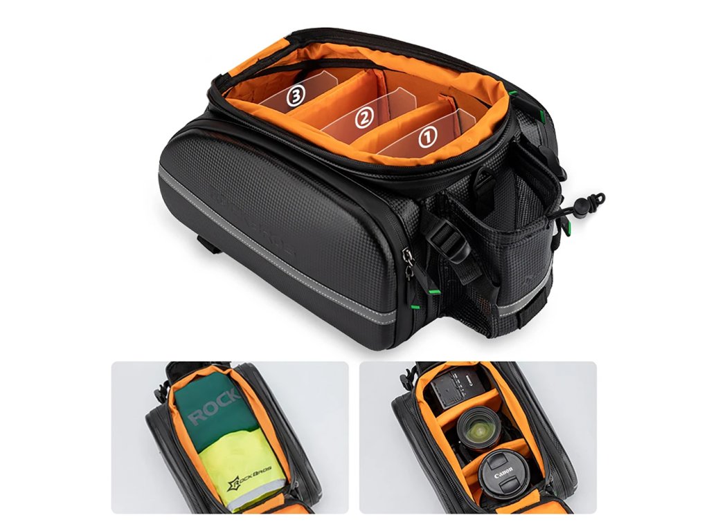 Taška Rockbros A6-6 pomáhá udržet pořádek díky modulárním přihrádkám. Toto řešení umožňuje vytvořit ideální prostor pro všechny vaše věci, bez ohledu na to, zda jsou to nástroje, oblečení nebo příslušenství. Další kapsy a elastické pásky poskytují místo pro drobné předměty, které chcete mít po ruce.