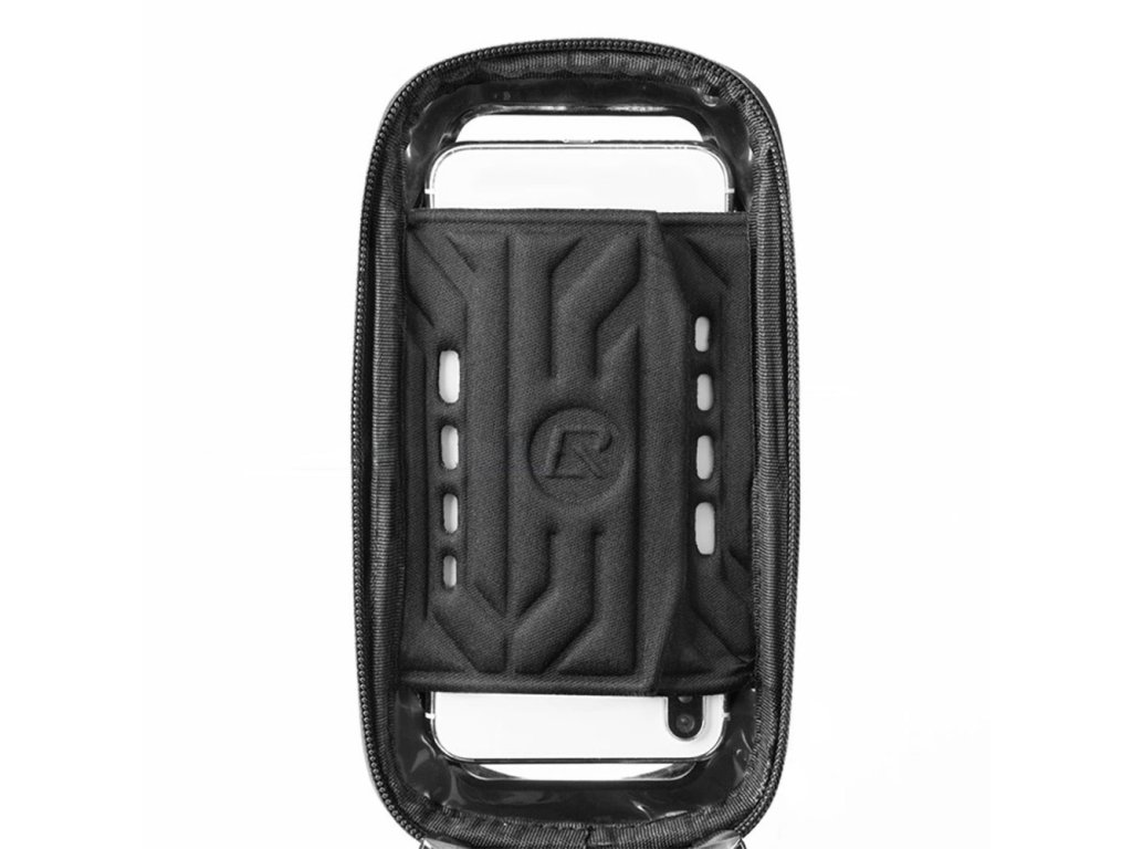 Průhledná kapsa na telefon nejen chrání váš telefon před deštěm, ale také umožňuje snadné používání aplikací, map nebo sledování statistik jízdy, aniž byste museli zařízení vyjmout.
