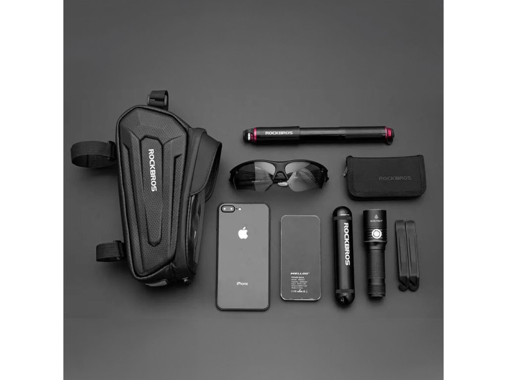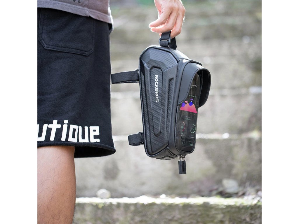 Brašna na kolo Rockbros B68 s pancéřovým rámem, kapsou na telefon a obsahem 1,7l - černá