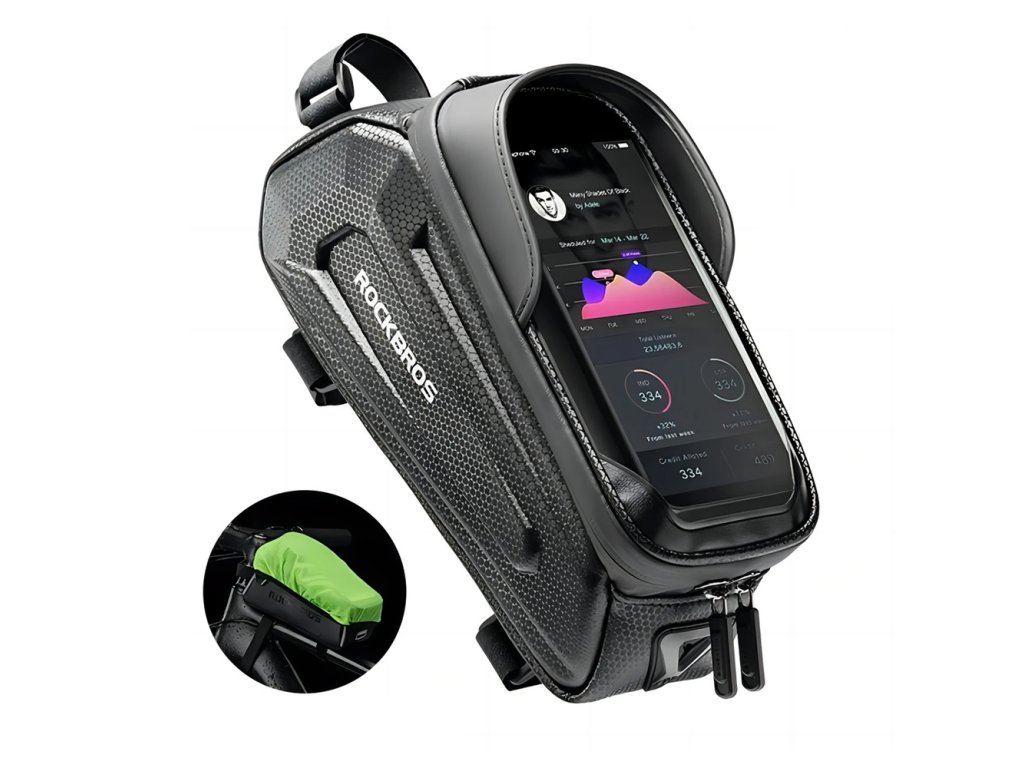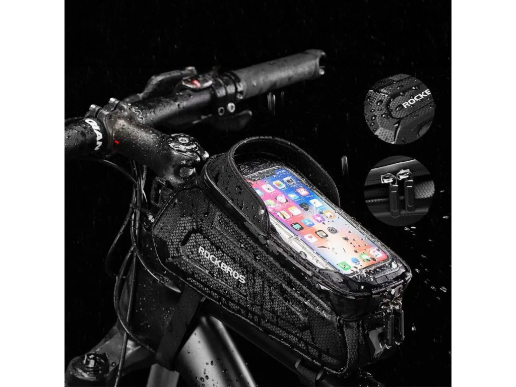 Cyklobrašna Rockbros B68 na rám, pancéřová s kapsou na telefon a obalem - černá