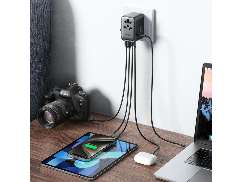 Díky výstupnímu výkonu 65W cestovní adaptér Joyroom JR-TCW02 zajišťuje rychlé a efektivní nabíjení. Bez problémů nabijete své notebooky, tablety a telefony v kratším čase, stejně jako další zařízení, jako jsou drony DJI, kamery, Nintendo Switch, Apple Watch nebo AirPods. To je ideální řešení pro ty, kteří si cení efektivity a úspory času při cestování.
