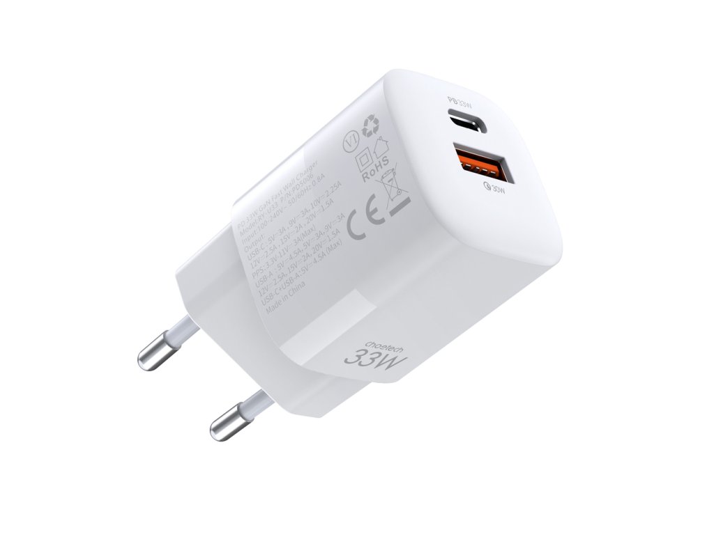 Tato praktická nástěnná nabíječka vám umožní nabíjet dvě zařízení najednou. Její maximální výkon je 33 W, takže přenos energie je opravdu rychlý. Můžete ji používat v mnoha zemích, protože má široký rozsah vstupního napětí - od 100 do 240 V. Její kompaktní tvar z ní dělá ideálního společníka na jakékoliv cesty. Nabíječka je kompatibilní s většinou chytrých telefonů a tabletů díky podpoře standardů PD a QC.