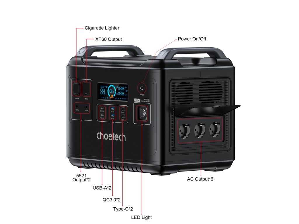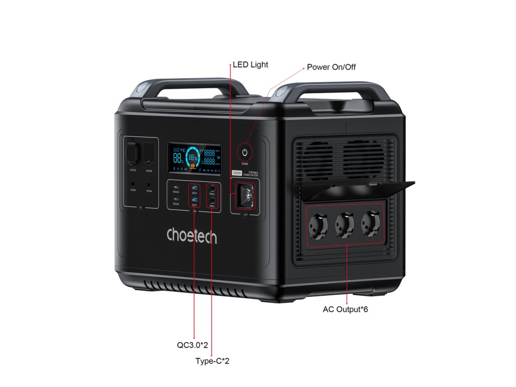 Choetech BS006 Super Mini Portable Power Station - 2000W LiFePO4 Power Bank - Black