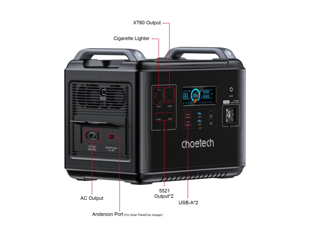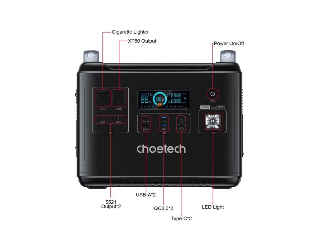 - Any power sources - car socket, solar panel and electrical outlet will be able to charge the Choetech station.