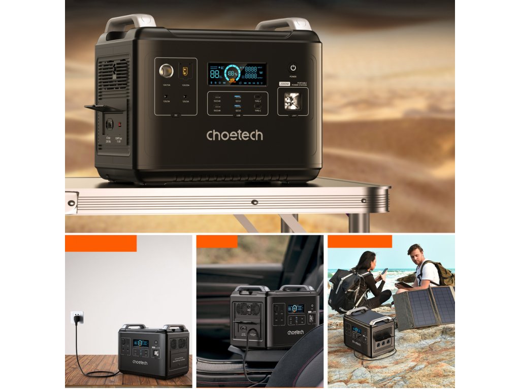 Free access to power outside the home? The portable power station from Choetech enables access to alternating current with a power of up to 2000W. This versatile device also guarantees uninterrupted operation of larger devices, such as a laptop, TV, drone, as well as a refrigerator, which makes it an ideal solution for a longer journey. For all lovers of "green energy", the station can also be powered by solar panels. You can function away from the power grid, without giving up electrical appliances. The station has an LCD display that shows the current battery charge, parameter report, temperature and charging power.