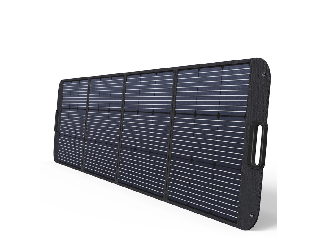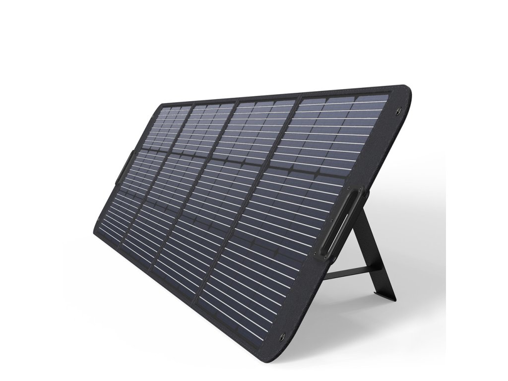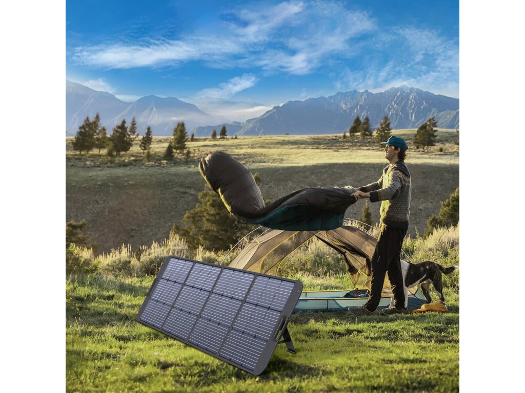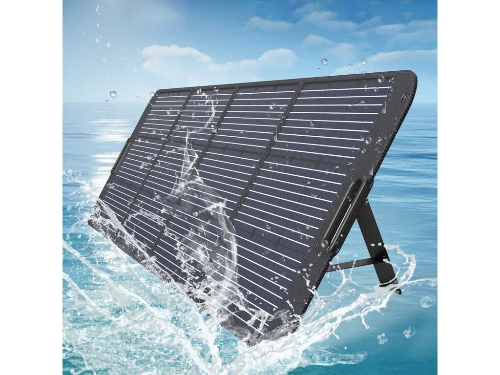 - Je velmi výkonným zdrojem elektřiny. Přenosný solární panel má vestavěné vysoce účinné články napájené sluneční energií a stojánky, které nastaví panel pod nejoptimálnějším úhlem 45 stupňů