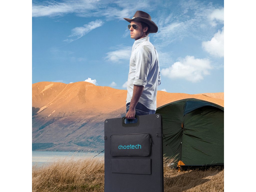 Zajímá vás přenosný solární panel? Vsaďte na Choetech SC011. Je to skládací solární nabíječka s výkonem 200 W, která se perfektně hodí jako solární sada pro karavan. Bude skvělou volbou pro všechny, kdo si cení vysokého výkonu, kompaktních rozměrů a nízké hmotnosti. Využijete ji při všech výjezdech: nejen s karavanem, ale i s obytným přívěsem, dodávkou nebo autem na zahraniční dovolenou. Přemění sluneční energii na elektrickou za jakýchkoli povětrnostních podmínek. Díky materiálu Oxford je solární nabíječka 200 W Choetech voděodolná (na úrovni IPX65) a odolná. Má pevnou, robustní konstrukci, kterou můžete nastavit pod úhlem 45 stupňů.