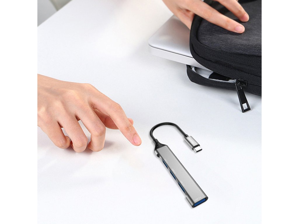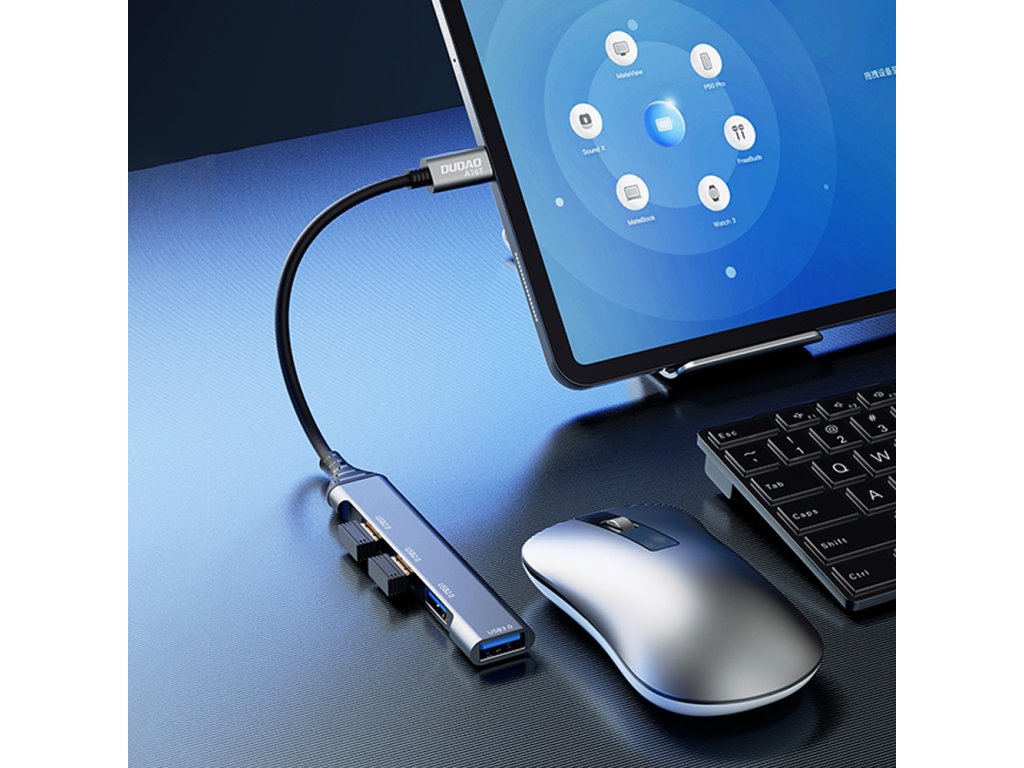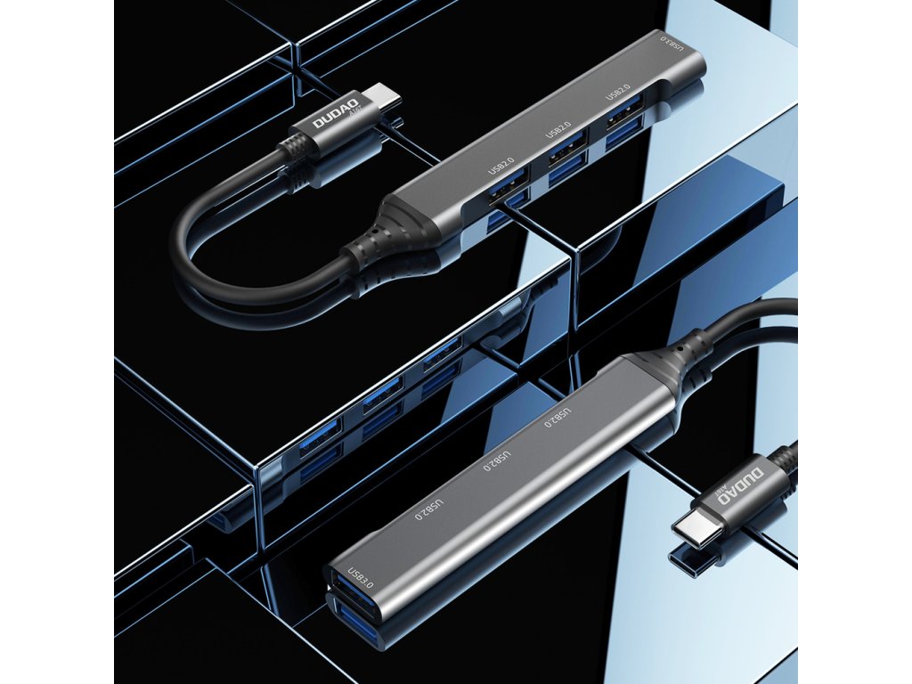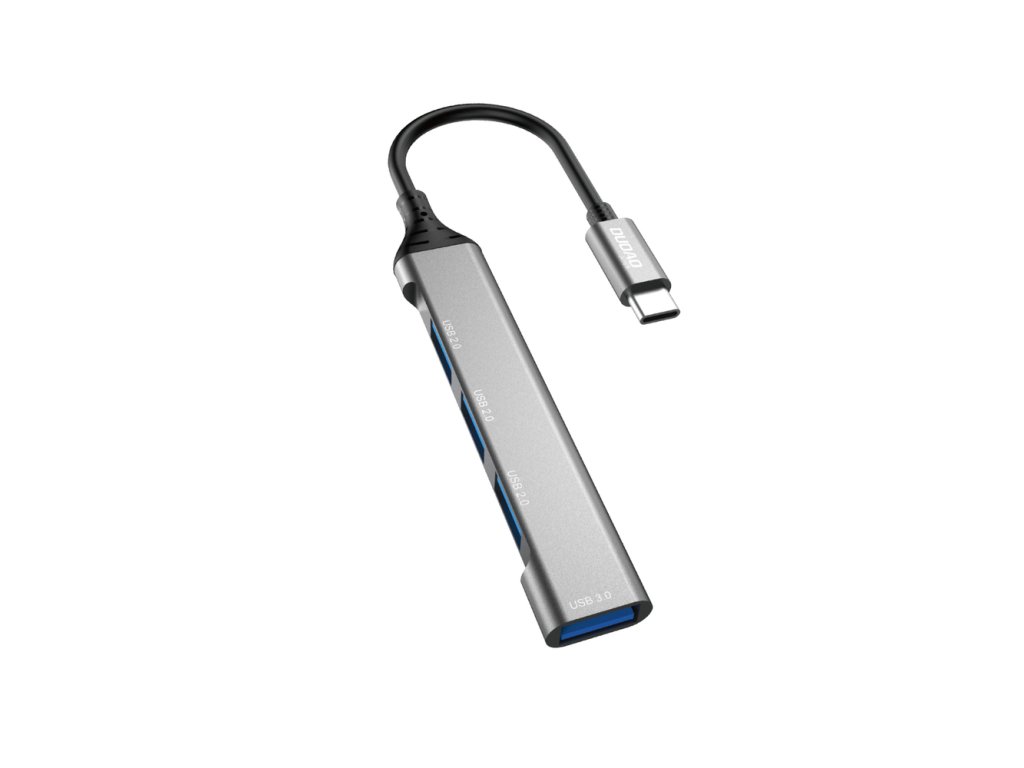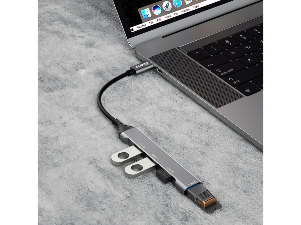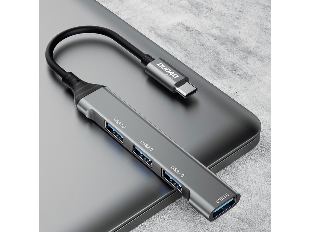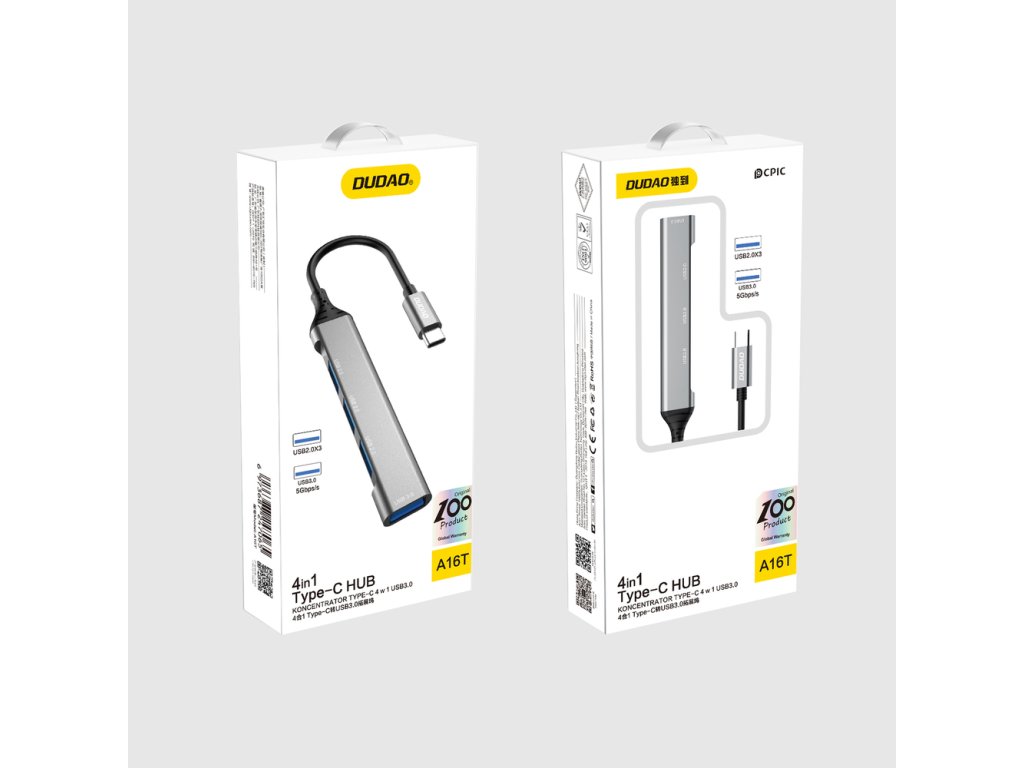 DUDAO A16T USB-C Hub 4v1 - USB-C na 4x USB (3x USB2.0, 1x USB3.0), stříbrný