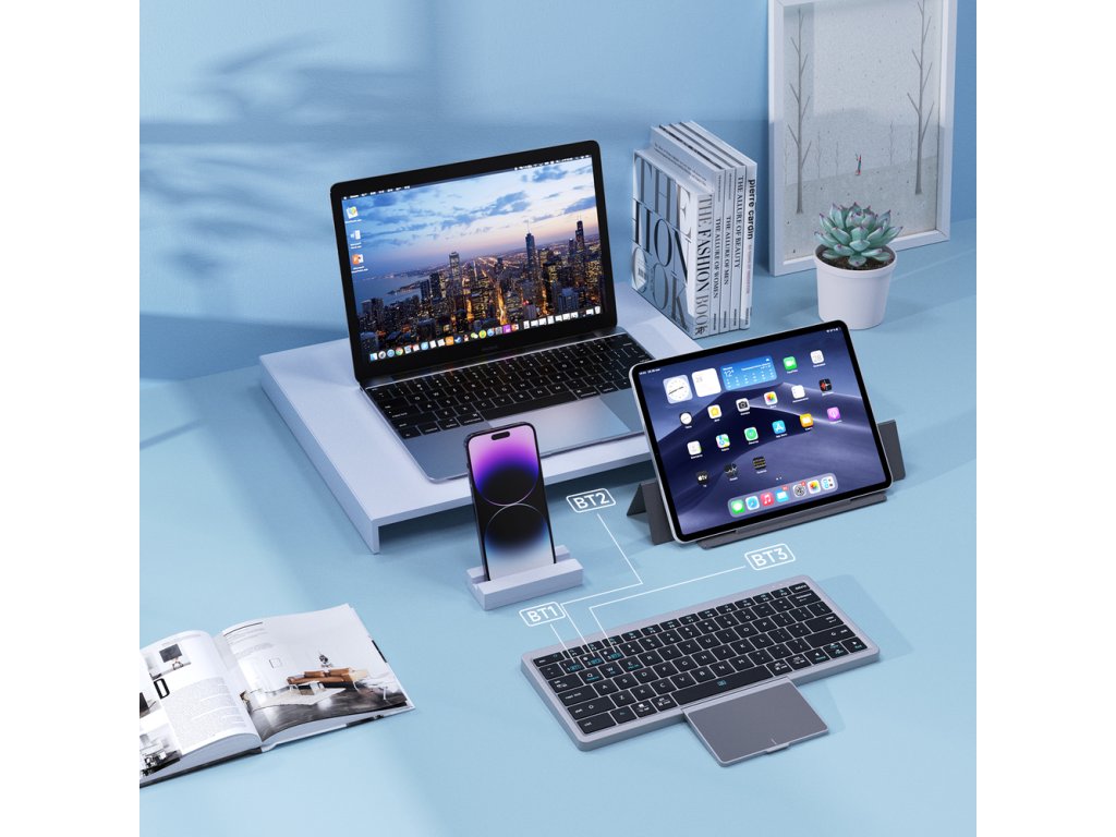 Klávesnice je jedním z nejdůležitějších doplňků potřebných k ovládání elektronických zařízení v kanceláři i doma. Výrobek značky Dux Ducis je bezdrátová klávesnice s vestavěným výklopným touchpadem. Klávesnice je kompatibilní s mnoha systémy, jako jsou iOS, iPad OS, Android, Windows. Vestavěný touchpad podporuje multi-touch, tj. gesta prováděná více než jedním prstem. Modul Bluetooth klávesnice umožňuje ovládat až 3 zařízení současně - stačí pomocí funkčních kláves přepínat mezi vybranými zařízeními. Klávesnice je vybavena ochranným pouzdrem, které lze použít jako stojánek pro telefon nebo tablet.