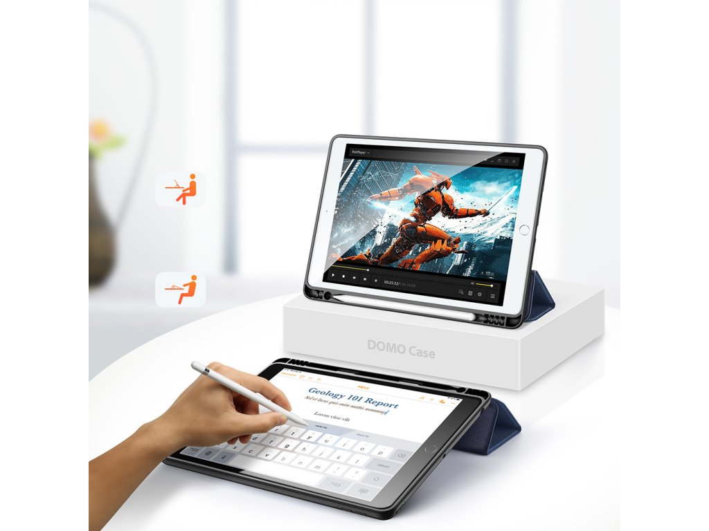 Elegantní design pouzdra Dux Ducis Domo z něj činí ideální doplněk pro každou příležitost – od pracovních schůzek až po běžné používání doma. Díky uzavřenému flipovému provedení poskytuje spolehlivou ochranu tabletu ze všech stran. Možnost složení do praktického stojánku usnadní sledování filmů nebo prohlížení fotografií. Inteligentní funkce Smart Sleep šetří energii – iPad se automaticky probudí nebo uspí při otevření a zavření klopy. Mírně zvýšené okraje chrání obrazovku i objektiv fotoaparátu a přesné výřezy zajišťují snadný přístup ke všem portům a tlačítkům. Systém odvádění tepla navíc zamezuje přehřívání tabletu.