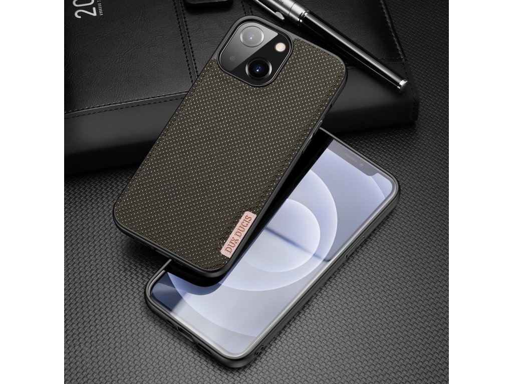 DUX DUCIS Fino Series Odolný kryt s textilními zády pro iPhone 13 Mini, hnědý