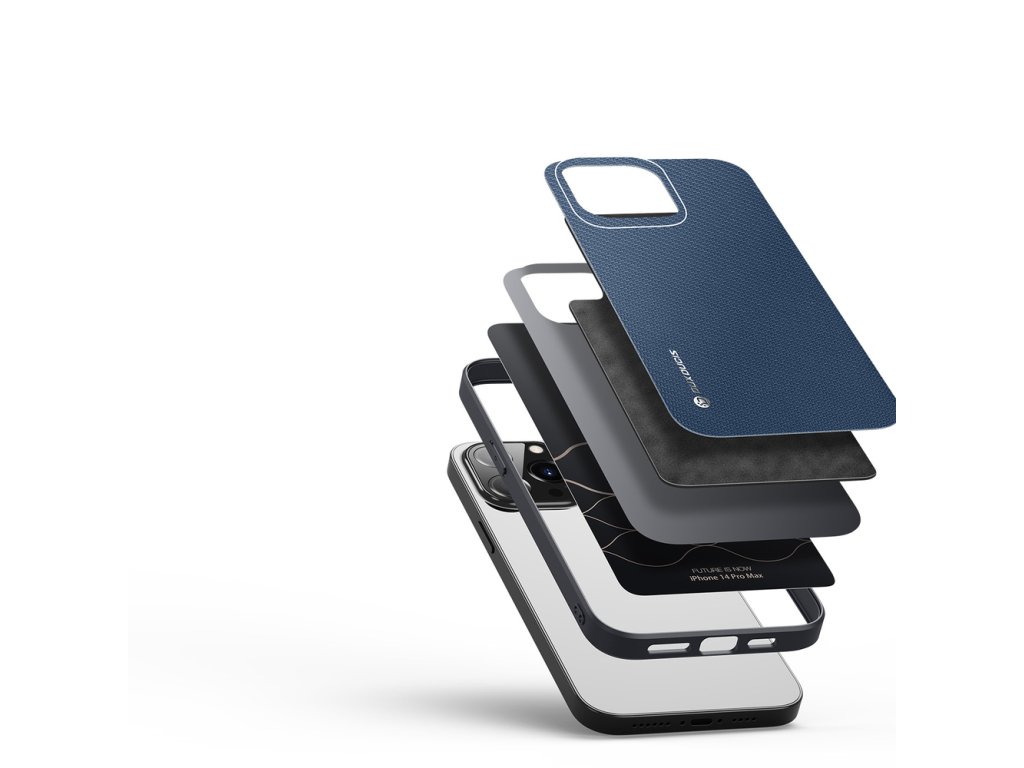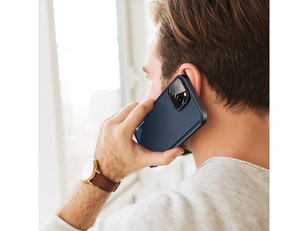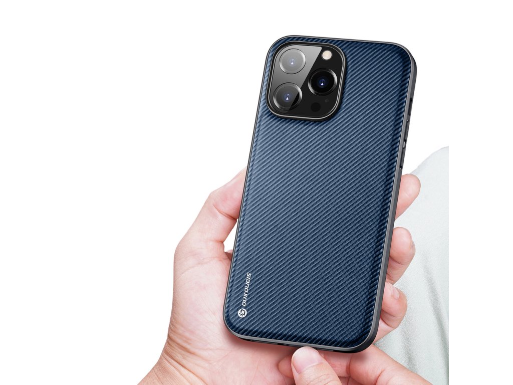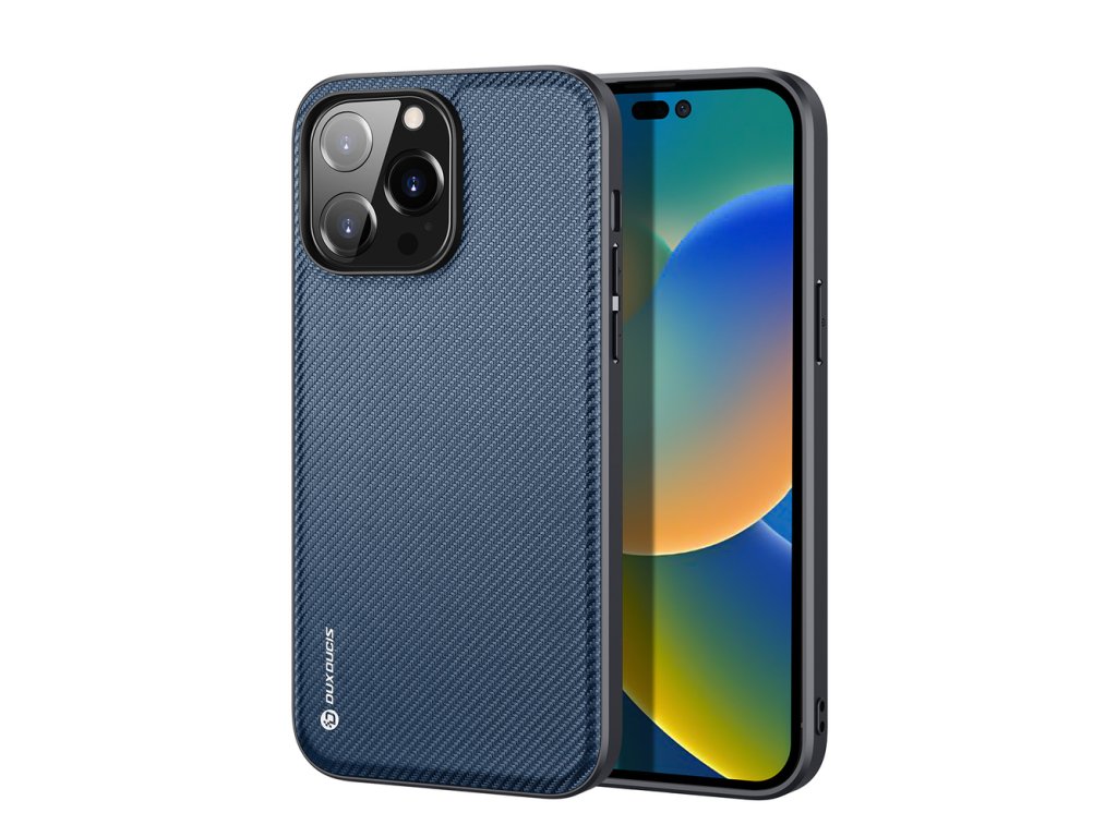 DUX DUCIS Fino Series Odolný kryt s textilními zády pro iPhone 14 Pro Max, tmavě modrý