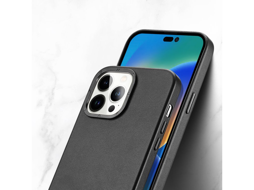 DUX DUCIS Grit Leather Magsafe Kožený kryt pro iPhone 14 Pro Max, černý