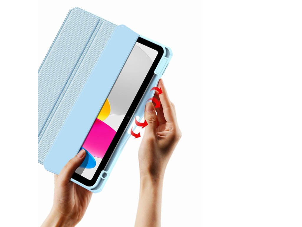 Praktické pouzdro od společnosti Dux Ducis Vám dává možnost využívat tablet na plno. Především jeho konstrukce typu tri-fold zahrnuje skládací stojánek, s jehož pomocí můžete tablet používat ve dvou různých polohách - na ležato i na stojato. Díky tomu můžete pohodlně prohlížet webové stránky nebo sledovat filmy.