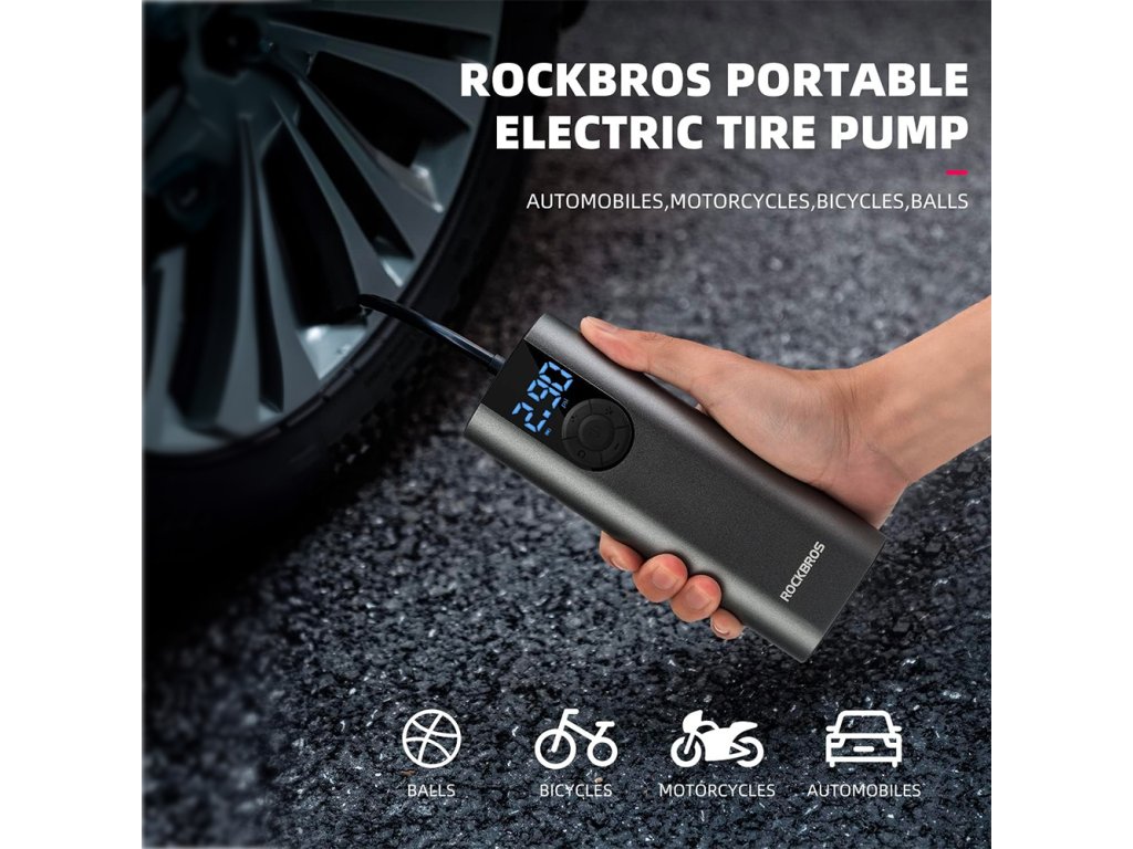 Elektrická cyklistická pumpa Rockbros 42720001001 s LED displejem a USB-C - USB-A kabelem - černá