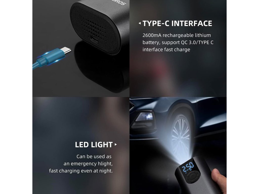 - Nafoukne pneumatiku kola za 2-3 minuty. Dvě baterie o kapacitě 2600 mAh zaručují, že pumpa bude připravena k použití, kdykoli ji potřebujete.