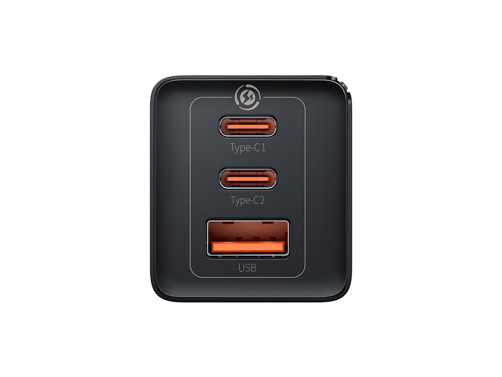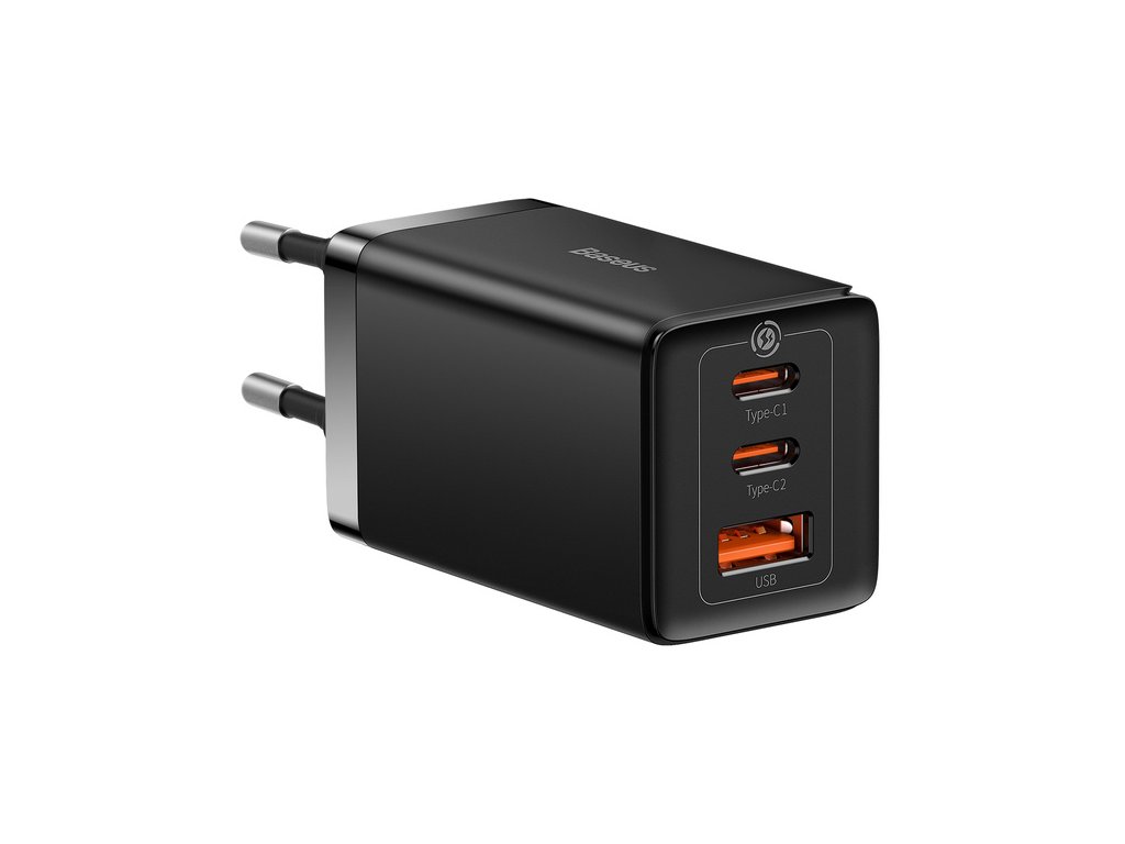 Rychlá síťová nabíječka GaN 2xUSB C 1xUSB 65W Baseus GaN5 Pro + kabel USB C - USB C 100W - černá