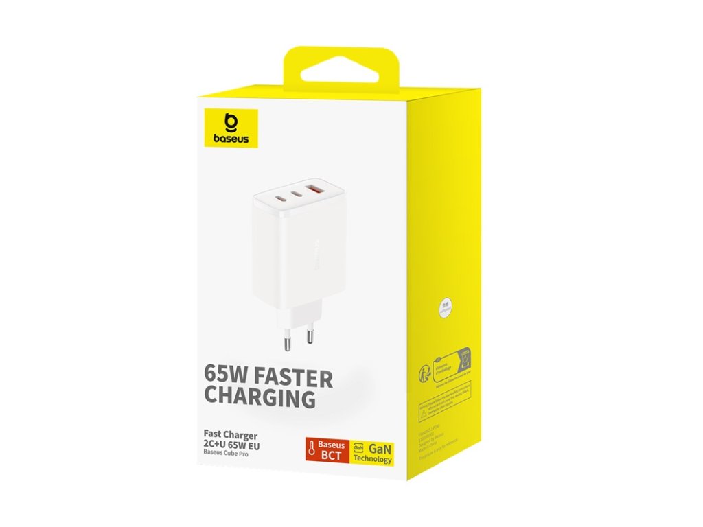 GaN Baseus Cube Pro 65W 2x USB-C USB-A nabíječka - bílá