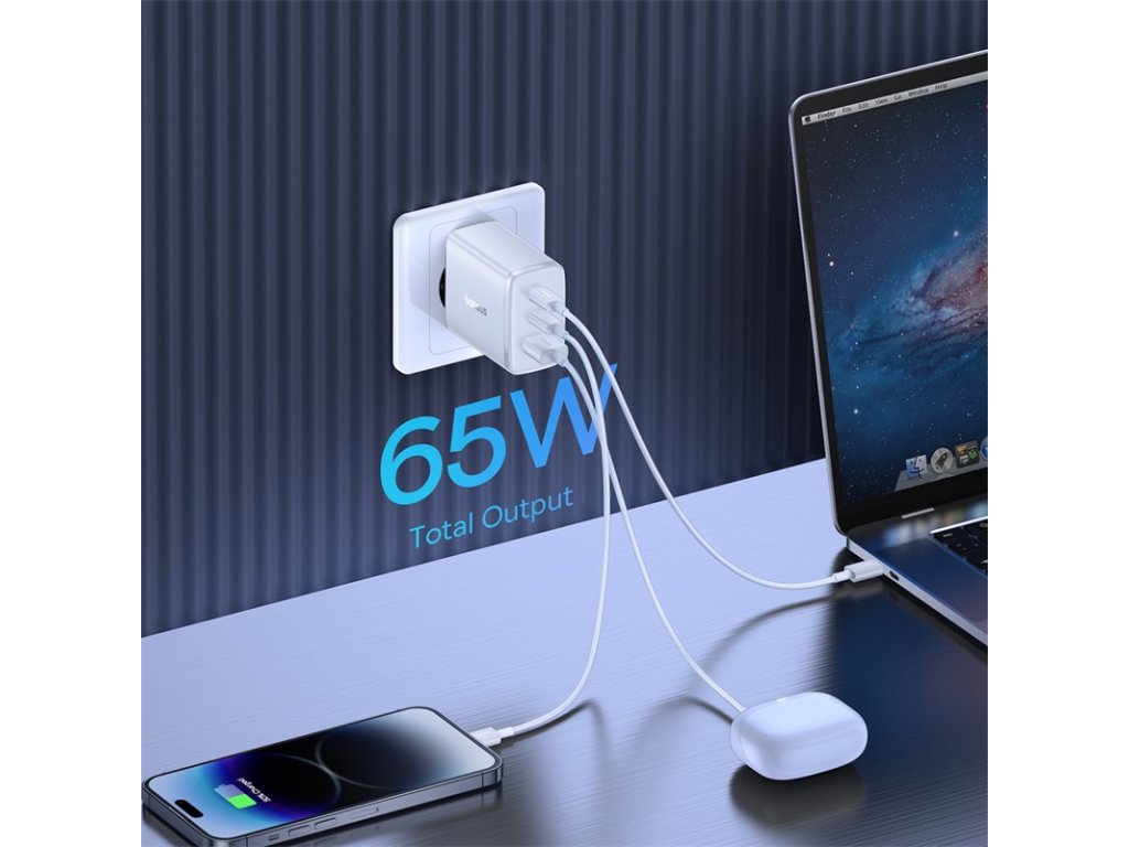 - Rychle a efektivně nabíjí mobilní zařízení. Nabízí výkon 65W, což umožňuje rychlé nabíjení notebooků, tabletů a telefonů s optimálním výkonem.