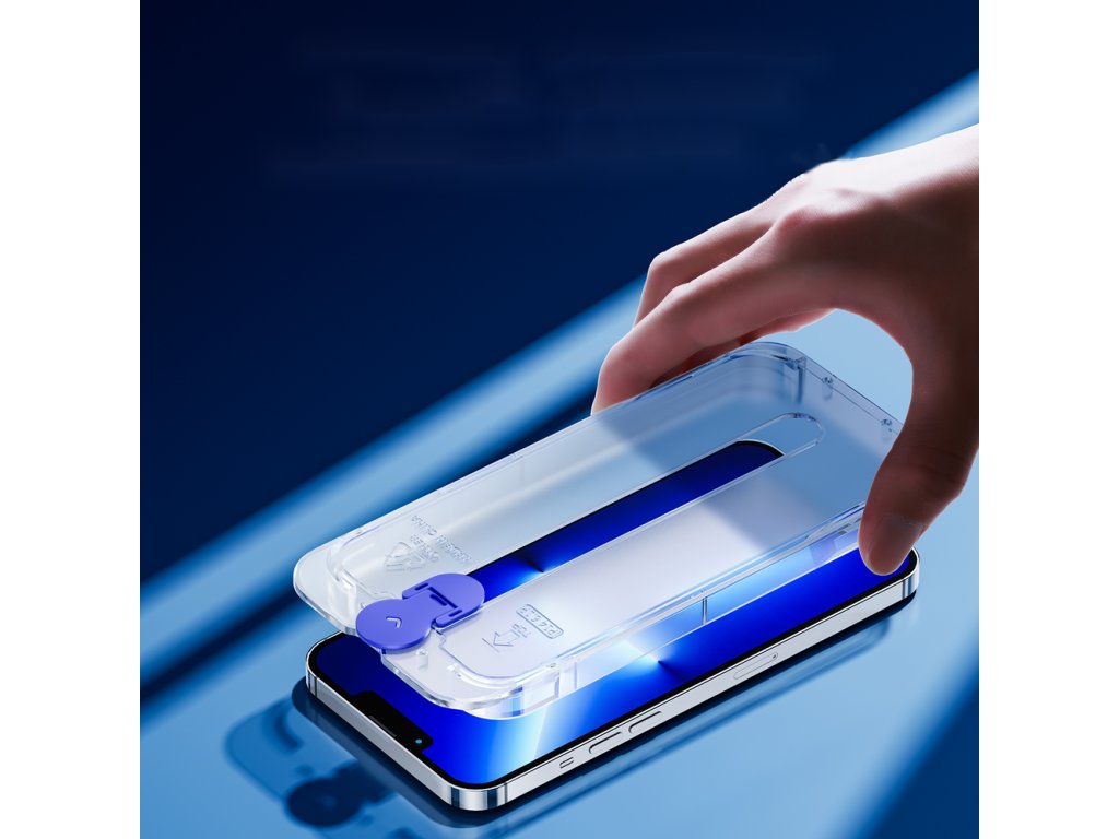 - Usnadní proces nalepení skla na telefon. Inovativní montážní sada vždy automaticky přizpůsobí umístění skla na telefonu.